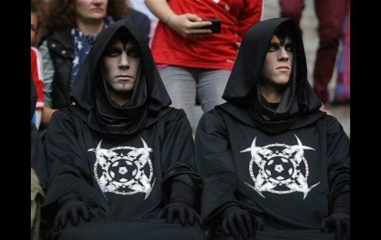 Deportes | Vestidos con túnicas negras y pintados con maquillaje oscuro se presentaron en Londres Hombres misteriosos invaden estadios europeos Vestidos con túnicas negras y pintados con maquillaje oscuro se presentaron en Stamford Bridge Por: SUN 28 de octubre de 2013 - 11:53 hs Así lucían los once aficionados que se dieron cita en el juego entre Chelsea y Manchester City. ESPECIAL / LONDRES, INGLATERRA (28/OCT/2013).- Once hombres vestidos con túnicas negras y pintados con maquillaje oscuro causaron confusión y curiosidad el domingo 27 de octubre en Stamford Bridge, al asistir al encuentro entre el Chelsea y Manchester City. Los integrantes de este grupo, sentados cerca de un banderín de tiro de esquina, realizaron movimientos sincronizados en intervalos irregulares durante el triunfo de los "blues" ante los "citizens". Curiosamente, este mismo fin de semana, otros hombres que portaban la misma indumentaria con el símbolo en color blanco, visitaron el Allianz Arena en el Bayern Munich vs. Hertha Berlín y el Juventus Stadium en el duelo de la "Veccchia Signora" vs. Genoa. El símbolo de estos hombres también apareció este fin de semana reflejado en la montaña de Pan de Azúcar de Río de Janeiro, mientras que en Hackney Marshes (Londres) un balón de tres metros de alto apareció en unas instalaciones deportivas de manera misteriosa. Temas Liga Premier Futbol Internacional Curiosidades Lee También "Streamer" transmite su parto en vivo y causa revuelo en redes sociales Hamás dice que recibió garantías de que la guerra en Gaza terminó Todas las selecciones que han calificado al Mundial 2026 hasta hoy Chivas y América calientan en redes el Clásico Nacional de la Fecha FIFA Recibe las últimas noticias en tu e-mail Todo lo que necesitas saber para comenzar tu día Registrarse implica aceptar los Términos y Condiciones