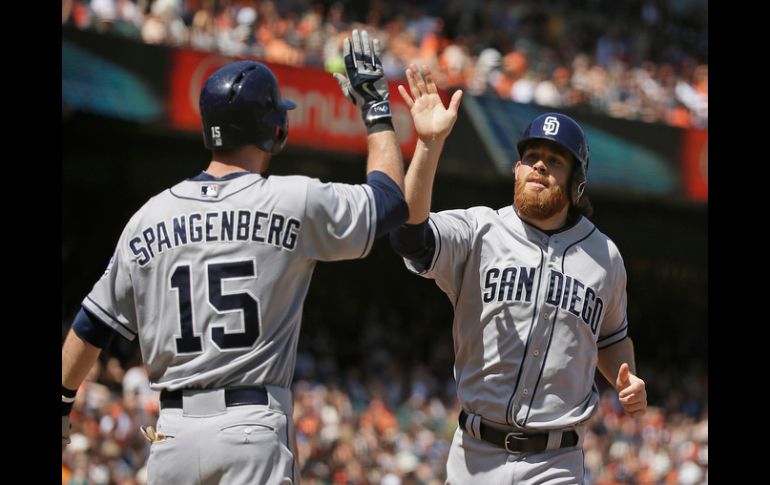 Deportes | Lanza siete episodios en la victoria 9-1 de San Diego sobre San Francisco Ian Kennedy anula a los Gigantes y temina con su buena racha Lanza siete episodios en la victoria 9-1 de San Diego sobre San Francisco Por: AP 6 de mayo de 2015 - 23:39 hs Kennedy es felicitado por Cory Spangenberg, autor de tres sencillos, tras anotar la sexta carrera del encuentro. AP / E. Risberg SAN FRANCISCO, ESTADOS UNIDOS (07/MAY/2015).- Ian Kennedy repartió cinco ponches en siete episodios para ganar su segunda apertura consecutiva, y los Padres de San Diego arrollaron ayer 9-1 a los Gigantes de San Francisco para cortarles una racha de ocho victorias consecutivas. El novato Austin Hedges conectó un sencillo productor, como parte de un racimo de cinco carreras en el tercer acto, para su primer imparable en las Grandes Ligas. En el octavo, añadió un elevado de sacrificio, y los Padres evitaron la barrida en la serie. Hedges cumplió su primer juego de inicio como cátcher, dos días después de que se le convocó de la sucursal de la Triple A en El Paso. Asimismo, hizo un tiro a la intermedia para retirar a Nori Aoki, en el tercer acto. Kennedy (2-1) señaló al receptor, para agradecerle la jugada. El venezolano Alexi Amarista conectó tres hits, incluido un doble, y remolcó dos carreras. Cory Spangenberg pegó tres sencillos, en una tarde en que los bates de San Diego no dejaron de hacer contacto ante Chris Heston (2-3). En las dos noches anteriores, San Diego se fue de 13-0 con corredores en posición de anotar. Por los Padres, el cubano Yonder Alonso de 4-2 con dos anotadas y una impulsada. Los venezolanos Amarista de 5-3 con dos empujadas, Yangervis Solarte de 1-0. Por los Gigantes, el puertorriqueño Ángel Pagán de 3-0. Los venezolanos Gregor Blanco de 1-0, Héctor Sánchez de 1-0. El dominicano Joaquín Arias de 1-0. Temas Beisbol MLB Padres de San Diego Gigantes de San Francisco Recibe las últimas noticias en tu e-mail Todo lo que necesitas saber para comenzar tu día Registrarse implica aceptar los Términos y Condiciones