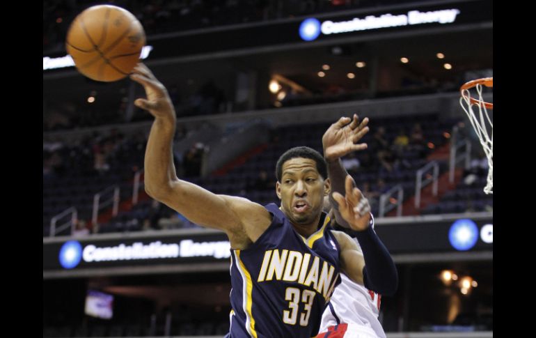 Deportes | Los basquetbolistas consolidan el segundo puesto en la División Central Indiana triunfa por tercera vez gracias a Granger Los basquetbolistas consolidan el segundo puesto en la División Central Por: EFE 4 de abril de 2012 - 21:27 hs Danny Granger (33) actúa con el balón durante el encuentro contra los Wizzards de Washington. AP / WASHINGTON, ESTADOS UNIDOS (04/ABR/2012).- El alero Danny Granger aportó 20 puntos y llevó a los Pacers de Indiana a su tercer triunfo consecutivo tras derrotar a domicilio 96-109 a los Wizards de Washington. Los Pacers (33-21) con siete triunfos en los últimos 10 partidos consolidan el segundo puesto en la División Central y son terceros en la Conferencia Este. El equipo de Indiana mantuvo su racha triunfal gracias al acierto ofensivo que les dejó con su mejor porcentaje de anotación en lo que va de campaña, un 58 por ciento (44 de 79). El base Darren Collison aportó un doble-doble de 17 puntos y 11 asistencias, y los reservas, el ala-pívot Tyler Hansbrough y el escolta brasileño Leandro Barbosa aportaron 14 puntos cada uno. Barbosa jugó 15 minutos y anotó 6 de 10 tiros de campo, incluidos 2 de 2 triples, y dos robos de balón. Los Wizards (12-42) sumaron su tercera derrota consecutiva, aunque tuvieron como su principal anotador al escolta Jordan Crawford, con 28 puntos. Mientras que Kevin Seraphin consiguió un doble-doble de 19 puntos y 10 rebotes, y el base John Wall aportó 13 tantos. El pívot brasileño Nené Hilario siguió sin poder jugar al no estar recuperado de las molestias que sufre en el pie izquierdo. Temas NBA Basquetbol Indiana Pacers Lee También Astros se instalan en la final de zona de la LNBP Astros de Jalisco doblega a Xalapa y se pone a un juego de la Final de Zona Astros de Jalisco toma ventaja sobre Xalapa en la semifinal de zona Iván Déniz confía en la fortaleza colectiva de Astros de Jalisco para Semifinales de Zona Recibe las últimas noticias en tu e-mail Todo lo que necesitas saber para comenzar tu día Registrarse implica aceptar los Términos y Condiciones