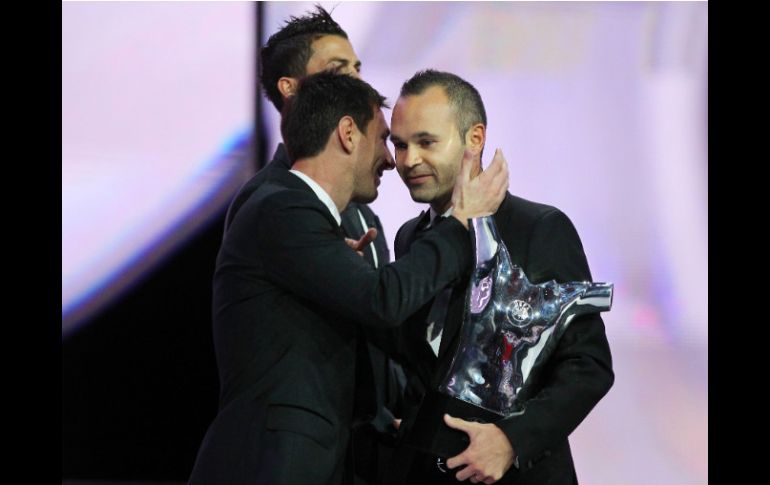 Deportes | Ahora es el mejor jugador de la temporada europea Iniesta comparte premio con Messi Agradeció el apoyo y compartió el premio con sus compañeros destacando que sin su apoyo no habría ganado Por: EFE 30 de agosto de 2012 - 11:51 hs Premio en mano, dijo sentirse orgulloso de compartir el podio con Messi y Cristiano Ronaldo. AFP / MÓNACO, MÓNACO (30/AGO/2012).- Andrés Iniesta, elegido como el mejor jugador de la temporada en Europa, destacó sentirse "feliz" y orgulloso de haber compartido "el podio con estos dos monstruos del futbol", en relación a su compañero, el argentino Leo Messi y el portugués Cristiano Ronaldo, finalistas en la elección. Andrés Iniesta, que fue elegido en la gala de la UEFA celebrada en Mónaco, tras el sorteo de la Liga de Campeones, superó en la votación a Messi y a Cristiano Ronaldo. "Estoy feliz. Muy contento de haber ganado este trofeo. Sobre todo es un privilegio estar en el podio con estos dos monstruos del futbol", dijo Iniesta con el premio en la mano. El jugador del Barcelona dedicó el premio a sus compañeros de equipo y de selección. "Quiero compartir este premio con Leo (Messi), mi compañero, y el resto de compañeros de equipo y de selección porque sin ellos el premio no tiene sentido", dijo. Temas Futbol Internacional Liga de Campeones de la UEFA Cristiano Ronaldo Lionel Messi Michel Platiní Lee También Chivas Femenil asegura su pase a la Liguilla por doceavo torneo consecutivo Selección Mexicana busca revancha y respuestas ante Ecuador Ivar Sisniega reveló que México tendrá partidos en Centroamérica México busca romper su mala racha ante la Conmebol frente a Ecuador Recibe las últimas noticias en tu e-mail Todo lo que necesitas saber para comenzar tu día Registrarse implica aceptar los Términos y Condiciones
