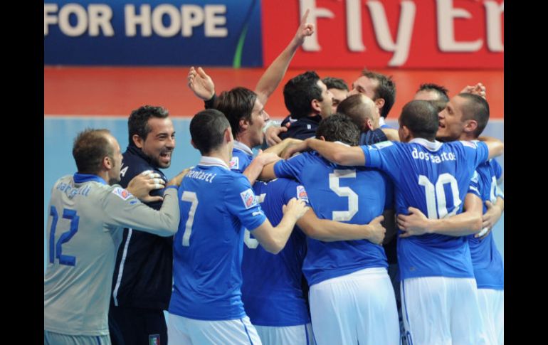 Deportes | La selección italiana derrotó por 3-0 a Colombia Italia repite bronce en el Futsal Los italianos mantuvieron el control del balón con interminables combinaciones de pases, pero le faltaba claridad ante el muro levantado por los sudamericanos Por: EFE 18 de noviembre de 2012 - 07:11 hs Jugadores italianos celebran tras vencer a Colombia durante el partido de fútbol. AFP / BANGKOK, TAILANDIA (18/NOV/2012).- La selección italiana de fútbol sala repitió el tercer puesto en un Campeonato del Mundo al derrotar por 3-0 a Colombia, el equipo revelación del torneo, en la final de consolación. Italia, que ya se colgó el bronce en el Mundial de 2008 disputado en Brasil, impuso su superioridad técnica en un partido donde llevó casi siempre la carga ofensiva. Una vez más durante el Mundial, Colombia saltó a la pista con una táctica defensiva, esperando en su campo para rechazar los ataques de los jugadores italianos. Merlim fue el primero en probar al meta Lozano, que despejó el balón a banda, al igual que hizo más tarde con un disparo del "blaugrana" Saad Assis. Italia mantuvo el control del balón con interminables combinaciones de pases, pero le faltaba claridad ante el muro levantado por los sudamericanos. Mediado el minuto 5, Ercolessi dispuso de una clara ocasión desde la frontal del área, después de tumbar con un amago a los colombianos Quiroz y Toro, aunque su disparo se encontró con el meta Lozano. La "azzurra" se acercaba al gol cuando Fortino picó el esférico ante la salida de cancerbero colombiano, tras una gran asistencia de Dos Santos, pero su balón se fue rozando el poste. Colombia se animaba al ataque en alguna jugada rápida pero sus tiros se marchaban lejos de la portería defendida por Mammarella. El portero italiano tuvo que emplearse al máximo para sacar con el pie un balón atrás de Prado que buscaba el remate de Serna a puerta vacía. En la portería contraria, Lima erraba su duelo frente a Lozano tras recuperar él mismo un balón en campo colombiano. El asedio italiano perdió fuerza y permitió a Colombia sumar ocasiones como la de Serna, que dudo en su uno contra uno frente a Mammarella, quien también tuvo que sacar con la cabeza un pase que dejaba a Reyes solo ante la portería. Italia salió en tromba en la reanudación pero los disparos de Saad, Merlim y Lima se volvieron a topar con los guantes de Lozano. En el minuto 26, una nueva intervención del arquero colombiano sacó un potente disparo de Lima ajustado al poste. Una jugada de estrategia de Italia en un saque de esquina, en el minuto 28, habilitó a Romano que con una excelente volea inauguró el marcador. Lozano, el héroe de la escuadra "cafetera" en el campeonato, se despidió entre lágrimas del Mundial y con una gran ovación ofrecida por el público al ser expulsado en el minuto 31, con roja directa, por cortar con la mano fuera del área una ocasión italiana. Italia aprovechó la superioridad numérica para marcar el segundo tanto obra de Fortino. El capitán "azzurro" Forte pudo ampliar la renta pero su disparo fue repelido por el portero suplente de Colombia, Nanez. A falta de 3 segundos para finalizar el encuentro, Fortino, firmaría el tercer tanto de Italia para colgarse el bronce en el Mundial. Ficha técnica: 3 - Italia: Mammarella (pt), Forte, Romano, Merlim, Assis (quinteto titular), Ercolessi, Leggiero, Honorio, Mentasti, Fortino, Dos Santos, Barigelli (pt), Lima y Mairelli (pt). 0 - Colombia: Lozano (pt), Sierra, Abril, Reyes, Caro (quinteto titular), Nanez (pt), Prado, Barreneche, Quiroz, Toro, Duque, Serna, Barney y Fonnegra. Árbitros: Jose Kateno (ANG), Scott Kidson (AUS) y Karel Henych (CZE). Goles: 1-0, m.28: Romano. 2-0, m.32: Fortino. 3-0, m.39: Fortino. Incidencias: Los colegiados mostraron tarjeta amarilla al italiano Forte y expulsó con roja directa al colombiano Lozano. Partido por el tercer y cuarto puesto del Mundial de fútbol sala disputado en el Indoor Stadium Huamark ante cinco mil espectadores. Temas Futbol Internacional Selección de Italia Selección de Colombia Recibe las últimas noticias en tu e-mail Todo lo que necesitas saber para comenzar tu día Registrarse implica aceptar los Términos y Condiciones
