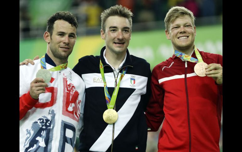 RÍO DE JANEIRO, BRASIL (15/AGO/2016). - El italiano Elia Viviani obtuvo el oro en la prueba de ómnium masculino carrera por puntos 6/6 en el ciclismo de pista de los Juegos Olímpicos de Río 2016, en una competencia que resultó accidentada.Viviani logró un total de 207 puntos para llevarse el título olímpico y dejar la presea de plata en el británico Mark Cavendish, quien terminó con 194, mientras que el bronce recayó en el danés Norman Hansen Lasse (192).