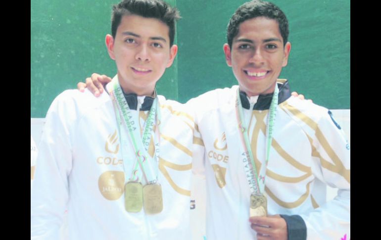 GUADALAJARA, JALISCO (03/AGO/2016).- La Selección Jalisco que compite en la Olimpiada Nacional 2016 continúa con la cosecha de medallas doradas. En esta ocasión dominaron el frontón con siete preseas de oro. Las tapatías Sofía Hernández y Jimena Ibarra se llevaron el oro en la modalidad de pareja en trinquete y paleta goma, mientras que Carlos Hernández y Herminio Olvera añadieron la segunda presea de primer lugar en pareja trinquete y de forma individual Carlos Hernández agregó el tercer oro en paleta goma.Daniel García y Laura Puentes, así como Sofía Hernández y Jimena Ibarra, completaron las siete preseas áureas para Jalisco.MEDALLERO Top 5Olimpiada NacionalCampeonato Nacional Juvenil