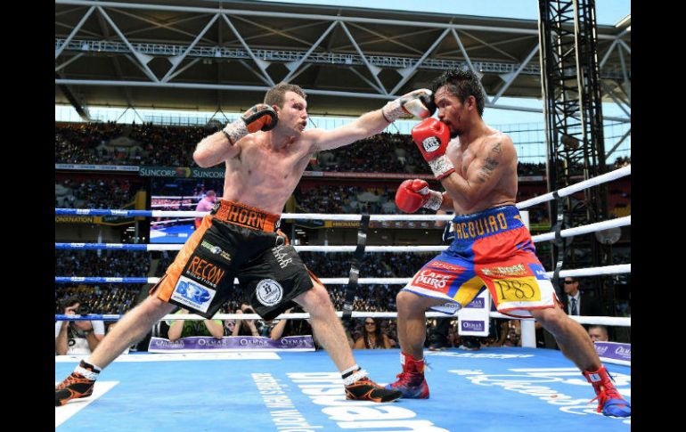 BRISBANE, AUSTRALIA (02/JUL/2017).- En un resultado controvertido, el australiano Jeff Horn dio la sorpresa y se convirtió en nuevo campeón welter de la Organización Mundial de Boxeo (OMB), luego de vencer por decisión unánime al filipino Manny Pacquiao.Ante más de 55 mil aficionados en el SunCorp Stadium que celebraron el resultado final, Horn dio una buena pelea, aunque no suficiente para imponerse a Pacquiao, pero los jueces le dieron el triunfo por 117-111, 115-113 y 115-113.Horn salió decidido a todo, sabía que era la oportunidad de su vida y desde el inicio presionó a Manny, a quien llevó contra las cuerdas para castigarlo a las zonas blandas y buscar un uper, aunque el asiático respondió y hasta le sacó el protector bucal.El australiano mantuvo el ritmo en el inicio del segundo y lanzó un golpe a las zonas blandas del "Pacman", quien respondió de la misma forma, primero con una izquierda abajo y luego al rostro, aunque el primero lucía mejor.Manny poco a poco parecía igualar gracias a su velocidad ante un rival que no dejaba de atacar y que aguantó cuando fue conectado por el filipino en el cuarto asaltoEn el sexto Manny fue llevado a las cuerdas y castigado, aunque resistió y pudo salir; instantes después y por un choque accidental, el filipino sufrió un corte en la zona derecha de la cabeza, de donde comenzó a sangrar.Horn, quien entraba con la testa en algunos momentos, por lo cual no fue penalizado, impactó nuevamente a Manny en el séptimo, ahora con un codazo y el filipino comenzó a sangrar del lado izquierdo de la cabeza; el local aprovechó el momento para lanzarse decidido a todo.Pero el campeón, dispuesto también a entregarse para defender su corona, soltó peligrosas izquierdas en el octavo, una que hizo tambalear al de Oceanía, quien se salvó en el noveno ante la presión de Manny, su mejor round hasta ese momento.Visiblemente cansado, Horn fue presionado por el "Pacman", quien buscó aprovechar su momento en la pelea para liquidarla, pero el australiano, con abrazos, buscaba algún respiro y seguir en la batalla.Ambos se entregaron en los últimos episodios, Manny con algunos zurdazos que no pudieron derribar a Horn, que también soltó algunos bombazos en espera de hacer daño, sin éxito, y todo indicaba la primera defensa de Manny, pero los jueces decidieron otra cosa.Pacquiao se quedó con registro de 59-7-2, 38 por la vía rápida, mientras que el nuevo campeón mundial welter OMB mejoró a 17-0-1, 11 antes del límite, para el triunfo.Mientras, en duelo por el cetro supermosca de la Federación Internacional de Boxeo (FIB), el filipino Jerwin Ancajas noqueó al japonés Teiru Kinoshita en el séptimo asalto, para mantenerse como monarca.Ancajas (27-1-1, 18 KOs) dominó desde el inicio al nipón (25-2-1, 8 KOs), quien fue superado prácticamente en todos los asaltos, y fue en el 1:35 minutos del séptimo rollo cuando liquidó la pelea sobre un retador que culminó con el ojo derecho muy lastimado.Finalmente, el olímpico en Río 2016, el irlandés Michael Conlan logró su tercera victoria como profesional, todas este año, tras vencer por nocaut técnico a Jarrett Owen al 1:56 minutos del tercer asalto, en la división pluma.