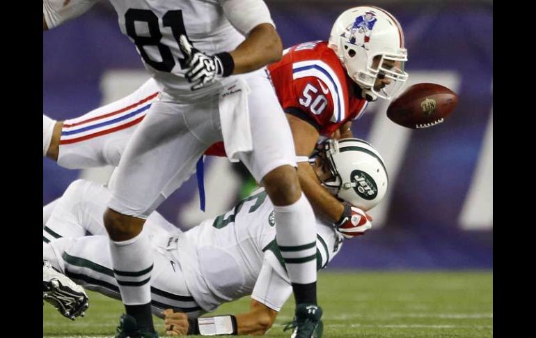 Deportes | Nueva Inglaterra saca un apretado triunfo de 29-26 en tiempo extra Jets asusta a los Patriotas Nueva Inglaterra saca un apretado triunfo de 29-26 en tiempo extra Por: AP 21 de octubre de 2012 - 19:04 hs Ninkovich (50) le quita el balón a Sánchez para asegurar la victoria de los Patriotas. REUTERS / FOXBOROUGH, MASSACHUSETTS (21/OCT/2012).- Rob Ninkovich recuperó un balón suelto de Mark Sánchez, luego de que Stephen Gostkowski consiguiera un gol de campo de 48 yardas en tiempo extra, y los Patriots de Nueva Inglaterra vencieron el domingo por 29-26 a los Jets de Nueva York. Los Patriots (4-3) quedaron solos en el primer puesto de la División Este de la Conferencia Americana. La jornada empezó con los cuatro equipos de la división empatados 3-3, pero los Jets (3-4) y los Bills de Buffalo perdieron, mientras que los Dolphins de Miami descansaron. Gostkowski empató el partido con un gol de campo de 43 yardas en la última jugada del tiempo reglamentario. En tiempo extra, cada equipo tiene la pelota a menos de que el primer equipo anote un touchdown. Por tanto, los Jets tuvieron una oportunidad luego de que los Patriots consiguieran sólo un gol de campo. Nueva York avanzó desde su yarda 15 a la 40 antes de que Sánchez perdiera el balón mientras era capturado y Ninkovich recuperó el balón para terminar el encuentro. Temas NFL Futbol Americano Patriotas de Nueva Inglaterra Jets de Nueva York Lee También Ulises Dávila se declara culpable por amaño de partidos; recibirá sentencia en diciembre El Real Oviedo destituye a Veljko Paunovic Mundial Sub-20: EU golea a Italia y enfrentará a Marruecos NFL: Sorpresiva derrota de los Eagles ante Giants Recibe las últimas noticias en tu e-mail Todo lo que necesitas saber para comenzar tu día Registrarse implica aceptar los Términos y Condiciones