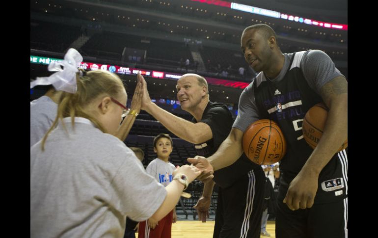 Deportes | Willie Cauley, Seth Curry, Eric Moreland y James Anderson participaron en la actividad Jugadores de Kings dan clínica a elementos de Olimpiadas Especiales Willie Cauley, Seth Curry, Eric Moreland y James Anderson participaron en la actividad Por: NTX 2 de diciembre de 2015 - 12:53 hs Anderson estuvo ayudando a los pequeños a mejorar su técnica. AP / R. Blackwell CIUDAD DE MÉXICO (02/DIC/2015).- Jugadores de Kings de Sacramento ofrecieron hoy una clínica a integrantes de Olimpiadas Especiales sobre la duela de la Arena Ciudad de México, donde mañana jugará ante Celtics de Boston, en la temporada regular de la Asociación Nacional de Baloncesto (NBA). Participaron el poste Willie Cauley Stein, Eric Moreland, Seth Curry (hermano del MVP Stephen Curry) y James Anderson y la estrella retirada Horace Grant. Ellos y algunos elementos del cuerpo técnico participaron en actividades de enseñanza de algunos movimientos con el balón, principalmente en pases y fintas para engañar al contrario. También realizaron fintas a la hora de ir hacia el aro y tirar a la canasta y en este ejercicio estuvo Horace Grant muy divertido y entretenido con los equipos. Después de enseñar algunos trucos con el balón, todos los participantes se reunieron al centro de la cancha para la foto del recuerdo con los brazos en alto y al grito de la Asociación Nacional de Baloncesto (NBA). Temas NBA Basquetbol Deportes Paralimpicos Lee También Astros se instalan en la final de zona de la LNBP ¡Korn regresa a México! Esto debes saber sobre la venta de boletos Conmociones cerebrales, la cuarta lesión más frecuente en partidos de la Conmebol Astros de Jalisco doblega a Xalapa y se pone a un juego de la Final de Zona Recibe las últimas noticias en tu e-mail Todo lo que necesitas saber para comenzar tu día Registrarse implica aceptar los Términos y Condiciones