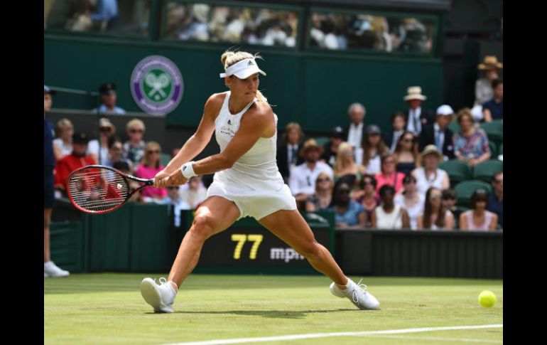 LONDRES, INGLATERRA (04/JUL/2017).- La tenista alemana Angelique Kerber, número uno mundial, avanzó a segunda ronda del torneo de Wimbledon al derrotar a la estadounidense Irina Falconi por un doble 6-4.La ausencia por embarazo de la estadounidense Serena Williams abre la puerta a una ganadora inédita en la hierba de Wimbledon, y Kerber es, a los 29 años, la favorita.En la próxima ronda, la alemana se medirá a la ganadora del duelo entre la belga Kirsten Flipkens y la japonesa Misaki Doi.
