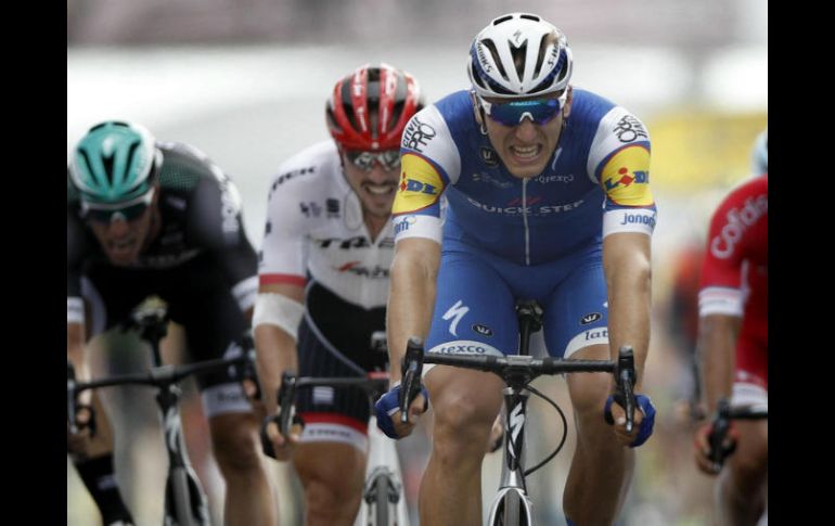 NUITS-SAINT GEORGES, FRANCIA (07/JUL/2017).- El alemán Marcel Kittel (Quick Step) consiguió su tercera victoria de etapa en este Tour de Francia tras imponerse en un emocionante sprint en la séptima, este viernes en Nuits-Saint-Georges, donde la ''foto finish'' tuvo que decidir el ganador por su igualdad en la línea con el noruego Edvald Boasson Hagen.En la clasificación general, el británico Chris Froome (Sky) se mantuvo con el ''maillot'' amarillo de líder.