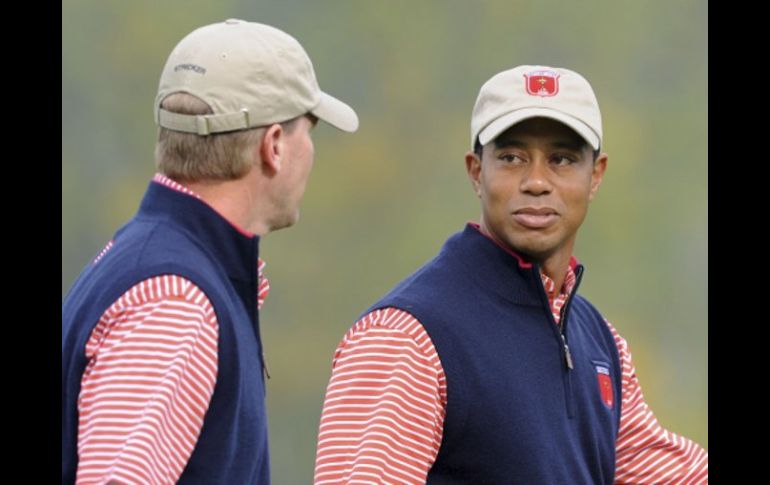 Deportes | Woods tenía 11 años dando inicio al torneo La Copa Ryder está lista para iniciar Con la participación de Mickelson y Johnson comenzará el cambate por el título del torneo de golf Por: AP 30 de septiembre de 2010 - 11:49 hs Tiger Woods practica con su compañero Steve Stricker previo al inicio del torneo de Copa Ryder. EFE / NEWPORT, GALES (30/SEP/2010).- Phil Mickelson y Dustin Johnson saldrán al campo cuando Estados Unidos comience el viernes su defensa del título de la Copa Ryder de golf. Mickelson y Johnson enfrentarán al mejor jugador europeo y su más reciente campeón Lee Westwood y Martin Kaymer en los primeros duelos en el campo Celtic Manor. Tiger Woods tiene un nuevo compañero para la Copa Ryder, pero no en la competencia por equipos. El número uno del mundo jugará con Steve Stricker tras convertirse en la primera pareja con marca de 4-0 el año pasado en la Copa Presidente. Además, será la primera vez desde 1999 que Woods no está en el primer duelo del torneo. Temas Golf Tiger Woods PGA Copa Ryder Lee También Novak Djokovic avanza a semifinales del Masters de Shanghái Sociales: Torneo de golf “Por más sonrisas” Cihuatlán y Arandas se coronan en la Copa Jalisco Lanzan vaso con bebida al golfista Rory McIlroy y su esposa (VIDEO) Recibe las últimas noticias en tu e-mail Todo lo que necesitas saber para comenzar tu día Registrarse implica aceptar los Términos y Condiciones