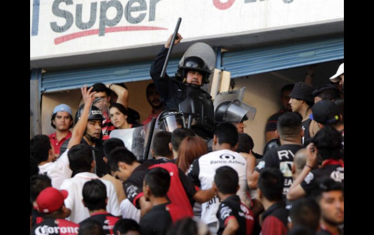 Deportes | El partido se detuvo al minuto 58 por invasión de cancha en el duelo La Porra del Atlas no deja seguir el Clásico El partido se detuvo al minuto 58 por invasión de cancha en el duelo Por: EL INFORMADOR 17 de mayo de 2015 - 18:27 hs Policías estatales controlaron a los aficionados. EL INFORMADOR / R. Tamayo GUADALAJARA, JALISCO (17/MAY/2015).- Era mucha la presión ya con el 4-1 en contra para el equipo Rojinegro, que hacia el minuto 57 dos espontáneos y aficionados de Atlas invadieron el terreno de juego del estadio Jalisco, lo que ocasionó el caos. Pero todo no terminó ahí. Minutos después, integrantes de la porra de Atlas que se ubicó en la zona norte del estadio Jalisco derribó la malla que separa la tribuna de la cancha para meterse sin consentimiento al campo. El momento se volvió un caos. Decenas de aficionados Rojinegros comenzaron con el desorden. Y le siguieron más compañeros de éstos. De repente, la situación rebasó la seguridad privada del estadio que tuvieron que intervenir elementos de la policía municipal. Ya en el terreno de juego, los 'barristas' encararon a jugadores tanto de Atlas como de Chivas; incluso, el atlista Luis Gerardo Venegas fue el único que recibió con una patada a uno de sus seguidores, después, al ver que la situación se tornó más ríspida, todos abandonaron la cancha. Los vestidores fueron el refugio. Pasaron aproximadamente unos 20 minutos para que se reanudaran las acciones, pero con el peligro latente y con la porra de Atlas 'caliente'. Prácticamente entre uniformados y seguridad privada formaron un muro, aunque éste parecía endeble. Una vez más, un sector del público manchó las acciones del encuentro, que en espectáculo no quedó a deber; sin embargo, la balanza se inclinó para un lado. Después de esta situación el juego no volvió a ser el mismo, la tensión se apoderó del coloso. A las afueras del estadio, se llevaban a los detenidos. En lo deportivo, tanto Chivas como Atlas respondieron a la expectativa y brindaron un buen juego en el partido de Vuelta de los Cuartos de Final del Clausura 2015, con el estadio pletórico. Desde muy temprano, familias se congregaron en las inmediaciones del estadio Jalisco. Muy dividida la afición. Ningún color en especial predominó, se notó en las tribunas, pero al final el caos se llevó la tarde. Un juego que tuvo prácticamente de todo. Goles, ambiente, pero lo que más se comentó fue la invasión de cancha y los desmanes por parte de la porra Rojinegra. EL INFORMADOR / ROBERTO ALARCÓN Temas Chivas Atlas Futbol Mexicano Clásico Tapatío Estadio Jalisco Clausura 2015 Liguilla Clausura 2015 Lee También Gilberto Mora REACCIONA en redes tras su eliminación del Mundial Sub-20 ¿Cuánto cuestan y dónde comprar boletos para el México vs Ecuador? Muere conductor tras choque entre camioneta y camión en Arandas Abre centro de acopio del DIF para afectados por lluvias en Puerto Vallarta Recibe las últimas noticias en tu e-mail Todo lo que necesitas saber para comenzar tu día Registrarse implica aceptar los Términos y Condiciones