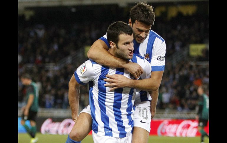 Deportes | Logra nueva victoria en Anoeta con marcador 5-1 La Real Sociedad se da un festín ante Betis La Real vence 5-1 al Betis en la decimosexta jornada de Liga de Primera División disputado esta tarde en el estadio de Anoeta Por: EFE 15 de diciembre de 2013 - 11:53 hs El delantero de la Real Sociedad Imanol Agirretxe (i) celebra con su compañero Xabi Prieto el gol marcado. EFE / SAN SEBASTIÁN, ESPAÑA (15/DIC/2013).- La Real Sociedad logró esta tarde una nueva victoria en Anoeta y lo hizo con goleada 5-1 ante un colista al que no le valió el cambio de entrenador para olvidar sus problemas clasificatorios. El conjunto donostiarra comenzó alegre en su juego y aprovechó el primer arranque y las dudas del Betis para lograr a los cinco minutos de juego el uno a cero, obra de Agirretxe, asistido por Rubén Pardo. Parecía que el encuentro iba a ser un paseo para los blanquiazules, que habían avisado también por medio de Carlos Vela, pero el Betis comenzó a desperezarse y a llegar al área de Bravo. La defensa realista no atraviesa su mejor momento y en este partido volvió a fallar, al olvidarse del marcaje a Molina, que solo por el carril central ante Bravo empató el encuentro. Se hizo el silencio en Anoeta y los béticos empezaron a creérselo, de forma que a la Real le tocó sufrir en un disparo al poste de Rubén Castro. El encuentro languideció antes del descanso, lo que no fue obstáculo para que el marcador estuviera a punto de moverse con otro intencionado disparo de Vela. El ariete mexicano reclamó penalti en el último minuto de la primera mitad tras caer en el área bética cuando se plantaba solo ante Andersen. En la segunda mitad, nuevamente calma chicha de inicio que se rompía con pequeños chispazos casi siempre generados por Vela. Sin mucho ruido ni brillo, los donostiarras lograrían su segundo tanto con un gran testarazo de Ansotegi, inapelable al fondo de la red. Se animó el partido y llegó el tercero de la Real, en una acción coral de Agirretxe, Vela y Griezmann, que sigue su idilio con el gol y culminó la mejor jugada del encuentro. Seguido, Rubén Castro pudo acortar distancia con un potente remate al larguero, pero inmediatamente se desató la Real que marcó el cuarto y dejó resuelto el choque con el segundo tanto de Agirretxe. Con Anoeta haciendo la ola, la Real todavía tendría tiempo para cerrar la cuenta con el quinto de la tarde noche, a cargo de Xabi Prieto tras un centro de José Ángel. - Ficha Técnica: 5.- Real Sociedad: Bravo; Carlos Martínez, Iñigo, Ansotegi, José Ángel; Bergara, Rubén Pardo (Elustondo, min. 75), Xabi Prieto; Vela, Agirretxe (Seferovic, min, 71), Griezmann (Chory Castro, min. 78). 1.- Betis: Andersen; Chica, Paulao, Amaya, Nono (Juanfran, min, 60), Reyes, Nacho, Vadillo (Salva, min. 71), Verdú (Matilla, min. 71), Molina. Rubén Castro. Árbitro: Aiza Gámez,. (Valencia). Tarjetas amarillas a Iñigo Martínez, Ansotegi, Xabi Prieto, Griezmann, Amaya, Molina. Goles: 1-0, min. 5: Agirretxe. 1-1, min. 19: Molina. 2-1, min. 55: Ansotegi. 3-1, min. 61 Griezmann. 4-1, min. 65: Agirretxe. 5.1, min. 84: Xabi Prieto. Incidencias: Encuentro disputado en el estadio de Anoeta ante 24.000 espectadores. EFE Temas Mexicanos en Europa Futbol Español Futbol Internacional Carlos Vela Recibe las últimas noticias en tu e-mail Todo lo que necesitas saber para comenzar tu día Registrarse implica aceptar los Términos y Condiciones
