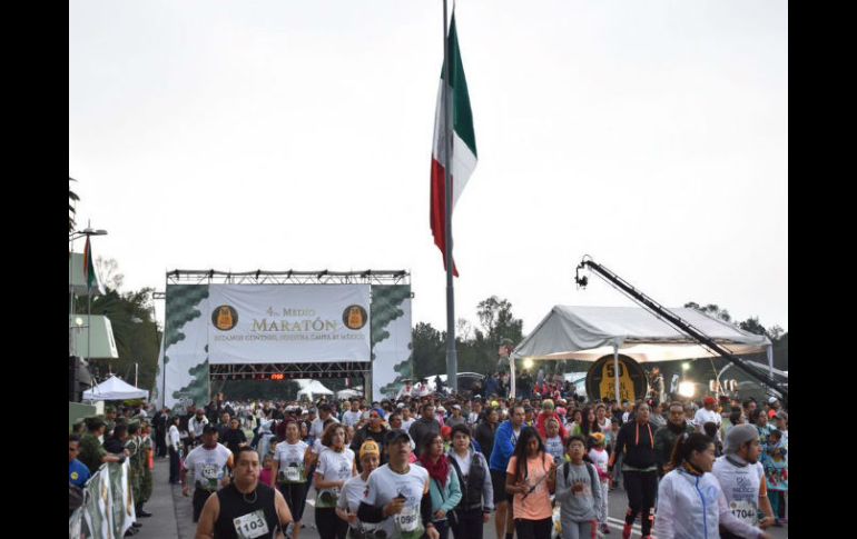CIUDAD DE MÉXICO (25/SEP/2016).- El conteo regresivo para dar salida fue realizado por Sergio Arturo García Aragón, General de División Diplomado del Estado Mayor, y así dio comienzo el Cuarto Medio Maratón de la Secretaría de la Defensa Nacional (Sedena).Alrededor de las 07:30 horas más de 25 mil participantes comenzaron la carrera en las instalaciones del Campo Militar Número Uno.Elementos del Ejército y Fuerza Aérea mexicanos y sus familiares recorrieron 21 kilómetros corriendo cuando las temperaturas aún eran bajas y el sol no había salido.Un segundo contingente, encabezado por Salvador Cienfuegos Zepeda, Secretario de la Defensa Nacional, realizó una caminata de tres kilómetros.Aeronaves MI-17 sobrevolaron el área y la banda de guerra amenizaba el evento mientras los maratonistas avanzaban.Los participantes no perdieron la oportunidad de tomarse "selfies" con sus compañeros y familiares.En el recorrido sobresalían las caras sonrientes de los niños, quienes al pesar del frío se encontraban emocionados de correr a lado de sus padres.Este medio maratón destacó la celebración de los 50 años de la aplicación del Plan DN-III-E, de auxilio a la población.