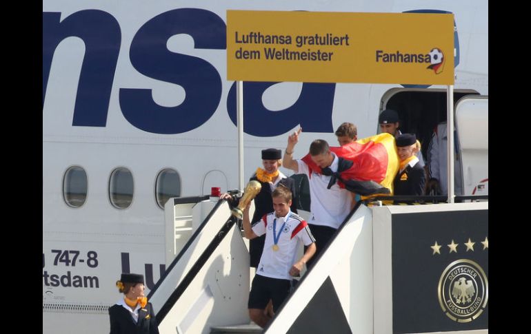 Deportes | Los alemanes se preparan para la gran celebración La Selección alemana aterriza en Berlín Alemania regresa a casa con su cuarta Copa del Mundo; miles de aficionados le da la bienvenida a la 'Mannschaft' Por: EFE 15 de julio de 2014 - 03:02 hs BERLÍN, ALEMANIA (15/JUL/2014).- La selección alemana de Joachim Löw aterrizó hoy pasadas las 08.00 GMT en el aeropuerto berlinés de Tegel de regreso de Brasil con su cuarta Copa del Mundo, mientras en la Puerta de Brandeburgo esperan cientos de miles de aficionados para darle la bienvenida a su "Mannschaft". El avión especial de Lufthansa, bautizado con el nombre de "Fanhansa Siegerflieger" -juego de palabras entre fans, vuelo y vencedores- tomó tierra en el aeródromo berlinés con más de una hora de retraso debido a un problema técnico detectado antes de despegar de Río de Janeiro. Centenares de personas e innumerables cámaras de televisión esperaban la llegada del avión en Tegel y recibieron con aplausos y gritos de júbilo al capitán de la selección, Philipp Lahm, el primero en aparecer con la Copa del Mundo en las escalerillas. Tras él, todo el equipo, que tuvo un aperitivo de lo que le espera en Berlín al sobrevolar el avión antes de aterrizar las inmediaciones de la Puerta de Brandeburgo, corazón de la llamada "Milla del aficionado", el mayor espacio público del país para las transmisiones en vivo de los partidos del Mundial. Ahí se concentran desde primera hora de la mañana miles de aficionados, que siguieron su llegada desde las mismas pantallas gigantes en las que los días previos habían visto los partidos del Mundial de Brasil. La victoria el domingo, en la final disputada en el estadio carioca de Maracaná ante Argentina, por el gol de Mario Götze en la prórroga, ha desatado una especie de nuevo entusiasmo entre patriótico y futbolístico en todo el país. Se trata del cuarto título mundialista de la selección alemana -tras los de 1954, 1974 y 1990- y el primero cuya celebración tendrá lugar junto al emblemático monumento de Berlín, desde 1999 de nuevo sede del gobierno y Parlamento alemán. Para la celebración se ha dispuesto de un escenario de 30 metros, que discurre en dirección hacia la adyacente Avenida 17 de julio, donde se espera que Götze y el resto del conjunto alcen el trofeo mundial ante la marea amarilla, roja y negra. El escenario será el mismo en el que el equipo alemán, tras quedar tercero en el mundial de Alemania 2006, le dio las gracias al público local por el apoyo recibido durante el torneo. La organización ha anunciado que tras el acto oficial con los jugadores, de una hora de duración, la celebración continuará cinco horas más con diversas actuaciones musicales que prolongarán la fiesta, a la que se espera que acuda medio millón de aficionados. La ciudad recibirá a los campeones del mundo con una gran pancarta que con el lema "Gracias chicos. Campeones del Mundo 2014", en el mismo lugar en el que desde 2006 se han visto en pantalla gigante todos los partidos de Alemania en los Mundiales. Temas Futbol Internacional Selección de Alemania Mundial Brasil 2014 Recibe las últimas noticias en tu e-mail Todo lo que necesitas saber para comenzar tu día Registrarse implica aceptar los Términos y Condiciones