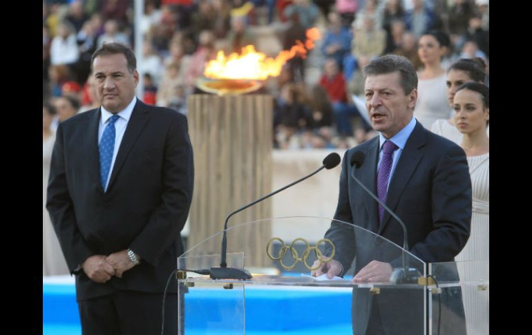 Deportes | Los encargados de Sochi realizan la ceremonia con manifestantes afuera La antorcha Olímpica llega con organizadores de Juegos de Invierno Los encargados de Sochi realizan la ceremonia con manifestantes afuera Por: AP 5 de octubre de 2013 - 13:21 hs Dmitry Kozak (D), primer ministro de Rusia, junto al comisionado olímpico Spyros Kapralos en la ceremo EFE / ATENAS, GRECIA (05/OCT/2013).- La antorcha olímpica fue entregada el sábado a los organizadores de los Juegos Olímpicos de Invierno, en una ceremonia en la sede de la primera olimpiada moderna. Las mismas actrices, vestidas como sacerdotisas, que encendieron la llama el domingo en la Olimpia Antigua, prendieron una antorcha con un pebetero colocado dentro del Estadio Panathinaiko en Atenas. La llama fue entregada al viceprimer ministro ruso, Dmitry Kozak. Después de un recorrido de siete días por Grecia, la antorcha recorrerá unos 64 mil kilómetros por Rusia. El relevo comenzará el lunes en Moscú, y terminará en Sochi el 7 de febrero, el día inaugural de los Juegos. Unas cuantas decenas de manifestantes protagonizaron una protesta pacífica el sábado contra la ley rusa que prohíbe la propaganda gay entre menores. nia. Temas Olimpiadas Juegos Olímpicos de Invierno Recibe las últimas noticias en tu e-mail Todo lo que necesitas saber para comenzar tu día Registrarse implica aceptar los Términos y Condiciones