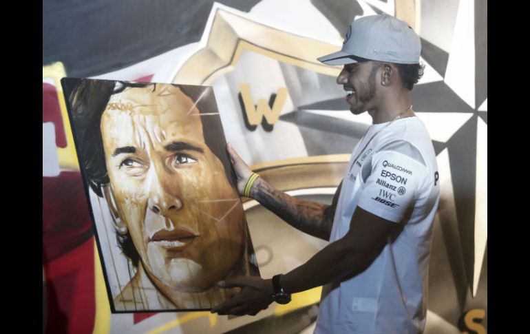 GUADALAJARA, JALISCO (09/NOV/2016).- En su sitio personal, Hamilton reserva un apartado especial para Ayrton Senna. Acerca del legendario piloto brasileño escribe, "Mucho de la manera en que conduzco hoy está inspirado por la manera en que lo vi manejar a él".Hoy en Sao Paulo el piloto asistió a la develación de un mural en su honor, pero no pudo evitar sonreír ante la imagen de uno de sus modelos a seguir.