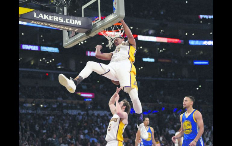 Deportes | NBA. Temporada 2015-2016 Lakers rompen la quiniela Los Lakers de Los Ángeles, uno de los peores equipos de la Liga, dio la gran sorpresa al vencer ayer a los actuales campeones, los Warriors de Golden State, quienes sufrieron apenas su sexta derrota de la actual temporada Por: EL INFORMADOR 6 de marzo de 2016 - 23:55 hs LOS ÁNGELES, ESTADOS UNIDOS (07/MAR/2016).- Los Lakers de Los Ángeles consiguieron ayer una de las mayores sorpresas de la temporada 2015-2016 de la NBA al vencer claramente a los campeones vigentes Warriors de Golden State, con marcador de 112-95. El choque entre los Lakers, que viven una profunda crisis, y uno de los mejores equipos de la historia, deparó una rotunda sorpresa. Los Lakers infligieron con estilo a los Warriors su sexta derrota de la temporada, frente a 55 victorias. Los mejores por el quinteto angelino fueron Jordan Clarkson, con 25 puntos, y D’Angelo Russell, con 21 tantos, mientras que su veterana estrella Kobe Bryant terminó con 12. El estelar Stephen Curry, el actual Jugador Más Valioso de la Liga, volvió a ser el mejor por los campeones vigentes, pero se quedó en sólo 18 puntos. “Empezamos bien el partido y hemos logrado ser constantes durante todo el encuentro, el equipo sigue aprendiendo”, dijo Kobe Bryant, campeón de la NBA en cinco ocasiones. Golden State todavía tiene el mejor récord de la NBA (55-6) y todavía puede lograr la mejor temporada regular en la historia, récord que ostentan los Bulls de Chicago de Michael Jordan en la campaña de 1995-96, con 72 victorias y 10 derrotas. En total, Golden State falló 26 de 30 disparos de larga distancia. Además, con la derrota se truncó una racha de siete triunfos seguidos de los Warriors, que cayeron por primera vez desde el 19 de febrero, cuando Portland los aplastó por 32 puntos de diferencia. También por los Warriors, el brasileño Leandro Barbosa sumó ocho puntos, dos rebotes y una asistencia. Su compatriota Anderson Varejao totalizó ocho unidades, dos tableros y una asistencia. Los Suns vencen a Memphis Devin Booker anotó 27 puntos y entregó nueve asistencias, mientras que Alex Len totalizó 19 unidades y 16 rebotes, para que los Suns de Phoenix vencieran el domingo 109-100 a los Grizzlies de Memphis. Mirza Teletovic añadió 18 tantos por los Suns, que hilvanaron su segunda victoria consecutiva. Tyson Chandler finalizó con 16 puntos y 10 rebotes, para que Phoenix ganara apenas por tercera vez en sus últimos 18 compromisos. Dos de esos triunfos han llegado ante los Grizzlies. Mike Conley lideró a Memphis con 22 unidades, mientras que Matt Barnes y JayMychal Green sumaron 17 cada uno. Mario Chalmers anotó 14 tantos y Lance Stephenson finalizó con 13. Los Suns acertaron el 52% de sus disparos, incluidos 12 de 28 triples. Memphis, en tanto, se vio limitado al 40% y permaneció cerca al embocar 10 de 22 detrás del arco. Temas NBA Basquetbol Lakers de Los Ángeles Warriors de Golden State Recibe las últimas noticias en tu e-mail Todo lo que necesitas saber para comenzar tu día Registrarse implica aceptar los Términos y Condiciones