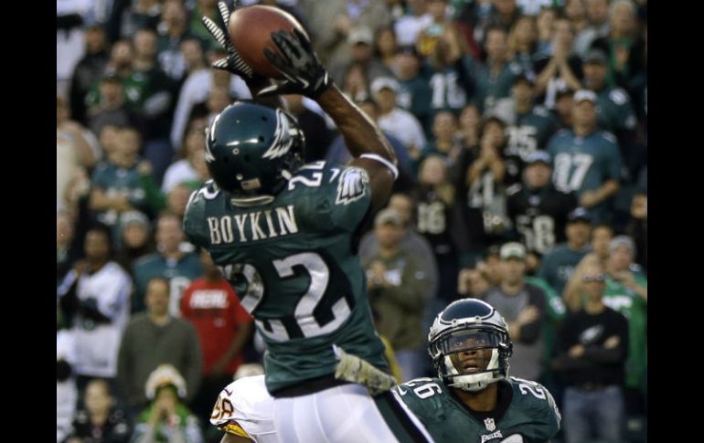 Deportes | El equipo de Filadelfia logra terminar con su racha de 10 derrotas seguidas en casa Las Águilas ganan a los Pieles Rojas y lideran división El equipo de Filadelfia logra terminar con su racha de derrotas en casa y vence a Washington 24-16 Por: AP 17 de noviembre de 2013 - 15:33 hs Brandon Boykin de las Águilas intercepta un pase de los Pieles Rojas durante el partido. AP / FILADELFIA, PENSILVANIA (17/NOV/2013).- Nick Foles lanzó para una ganancia de 298 yardas y corrió para conseguir un touchdown, LeSean McCoy registró dos anotaciones por tierra y las Águilas de Filadelfia cortaron una racha de 10 derrotas seguidas en casa al vencer el domingo por 24-16 a los Pieles Rojas de Washington. Un año después de terminar con marca de 4-12 bajo las órdenes del entrenador en jefe Andy Reid, el conjunto de Chip Kelly (6-5) es líder en la División Este de la Conferencia Nacional. Se encuentra medio juego delante de Dallas (5-5). Los Pieles Rojas, campeones divisionales defensores, cayeron a un registro de 3-7. Filadelfia no había ganado en el Linc en 413 días desde que derrotaron a los Gigantes de Nueva York el 30 de septiembre de 2012. Con desventaja de 24-0 en el cuarto periodo, los Pieles Rojas repuntaron con pases de anotación de Robert Griffin III, de 62 yardas a Darrel Young, y de 41 yardas a Aldrick Robinson, así como conversiones de dos puntos. Griffin condujo luego a los Pieles Rojas a la yarda 18 de las Águilas antes de que su pase a Brandon Boykin fuera interceptado. Temas NFL Futbol Americano Águilas de Filadelfia Pieles Rojas de Washington Recibe las últimas noticias en tu e-mail Todo lo que necesitas saber para comenzar tu día Registrarse implica aceptar los Términos y Condiciones