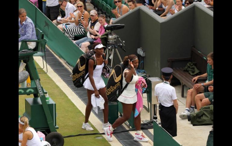 Deportes | Perdieron ante las rusas Elena Vesnina y Vera Zvonareva Las hermanas Williams pierden en dobles en Wimbledon La derrota pone fin a las esperanzas de las estadounidenses de ganar el Gran Slam este año Por: AP 30 de junio de 2010 - 12:46 hs Venus (izq.) y Serena Williams se despiden de Wimbledon en dobles. AP / WIMBLEDON, GRAN BRETAÑA (30/JUN/2010).- Las hermanas Venus y Serena Williams perdieron el miércoles 3-6, 6-3, 6-4 ante las rusas Elena Vesnina y Vera Zvonareva en cuartos de final del torneo de dobles femeninos en Wimbledon. La derrota pone fin a las esperanzas de las estadounidenses de ganar el Gran Slam este año después de sus victorias en el abierto australiano y el abierto francés. Habían ganado cuatro títulos consecutivos de Gran Slam. Las hermanas, primeras cabeza de serie, buscaban su decimotercera corona en torneos de Gran Slam y la quinta aquí. Temas Tenis Torneo WTA Serena Williams Wimbledon Venus Williams Lee También Novak Djokovic avanza a semifinales del Masters de Shanghái Sabalenka mantiene su racha ganadora No solo Puma, estas son las colecciones de tenis para Día de Muertos 2025 (FOTOS) Calendario de partidos de la J13 del Apertura 2025 Recibe las últimas noticias en tu e-mail Todo lo que necesitas saber para comenzar tu día Registrarse implica aceptar los Términos y Condiciones
