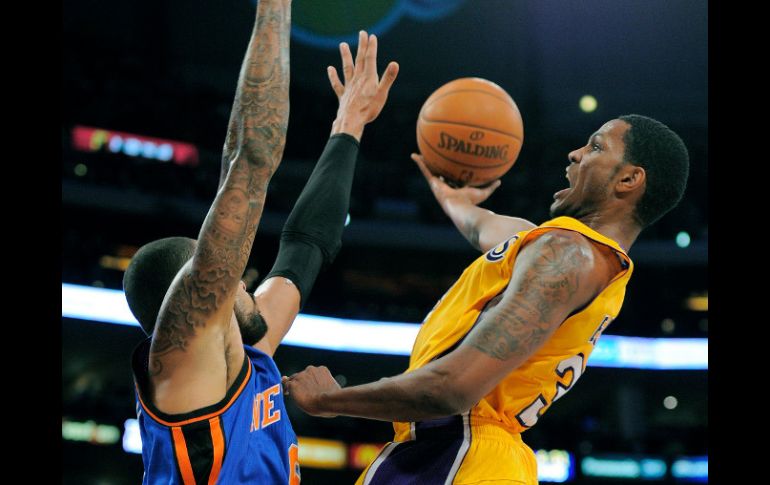 Deportes | Derrota a Knicks por 99 a 82 Liga Lakers segundo triunfo consecutivo Pau Gasol anotó 16 puntos y atrapó 10 rebotes, Steve Blake colaboró con 11 y Josh McRoberts finalizó con 10 unidades Por: NTX 30 de diciembre de 2011 - 08:20 hs Devin Ebanks de Lakers intenta un lanzamiento mientras es bloqueado por Tyson Chandler de Knicks durante primera mitad del juego. AP / LOS ÁNGELES, ESTADOS UNIDOS (30/DIC/2011).- Kobe Bryant encestó 28 puntos y fue el líder del ataque de Lakers de Los Ángeles quienes eslabonaron su segundo triunfo consecutivo al derrotar esta noche en casa a Knicks de Nueva York por 99 a 82. Por Lakers (2-2) también se hicieron presentes a la ofensiva el español Pau Gasol quien anotó 16 puntos y atrapó 10 rebotes, Steve Blake colaboró con 11 y Josh McRoberts finalizó con 10 unidades en su haber. Por Knicks de Nueva York (1-2), que sufrió su segundo descalabro consecutivo, sus mejores canasteros fueron Carmelo Anthony quien anotó 27 puntos, Amare Stoudemire contribuyó con 15 y Tyson Chandler terminó con 13 unidades además que capturó 11 rebotes. Anotación por cuartos Nueva York 24 27 21 10 -- 82 L.A. Lakers 31 32 17 19 – 99 En Portland, Wesley Matthews anotó 25 puntos con los que encabezó el ataque de los Traiblazers de Portland quienes extendieron a tres los juegos ganados de forma consecutiva al dar cuenta de Nuggets de Denver por 111 a 102. Por Portland (3-0) también se hicieron presentes a la ofensiva Raymond Felton quien encestó 23 puntos, Jamal Crawford colaboró con 22 mientras que LaMarcus Aldridge y Gerald Wallace concluyeron con 13 unidades cada uno. Por Denver (2-1) sus mejores canasteros fueron Ty Lawson quien anotó 25 puntos, Arron Affalo colaboró con 19, el italiano Danilo Gallinari contribuyó con 16, Andre Miller logró 13 y el brasileño Nené Hilario terminó con 10 unidades. Anotación por cuartos Denver 17 36 26 23 -- 102 Portland 30 23 30 28 – 111 En Sacramento, Derrick Rose anotó 19 puntos para liderar una ofensiva en la que otros cuatro de sus compañeros anotaron al menos 12 unidades y guió a Toros de Chicago a un triunfo como visitante sobre Reyes de Sacramento por 108 a 98. Por Chicago (2-1) también destacaron a la ofensiva Cartlos Boozer quien consiguió 16 puntos y bajó 15 rebotes, Richard Hamilton colaboró con 16, en tanto que el sudanés Luol Deng y Ronnie Brewer finalizaron con 12 unidades cada uno. Por Sacramento (1-2), que sufrió su segundo revés al hilo, sus mejores canasteros fueron Marcus Thornton quien encestó 20 puntos, Tyreke Evans logró 19, DeMarcus Cousins coniguió 15 y atrapó 12 rebotes, el novato Jimmer Fredette anotó 14 y John Salmons concluyó con 12 unidades. Anotación por cuartos Chicago 30 30 25 23 -- 108 Sacramento 24 29 22 23 -- 98 Temas NBA Basquetbol Lakers de Los Ángeles Recibe las últimas noticias en tu e-mail Todo lo que necesitas saber para comenzar tu día Registrarse implica aceptar los Términos y Condiciones
