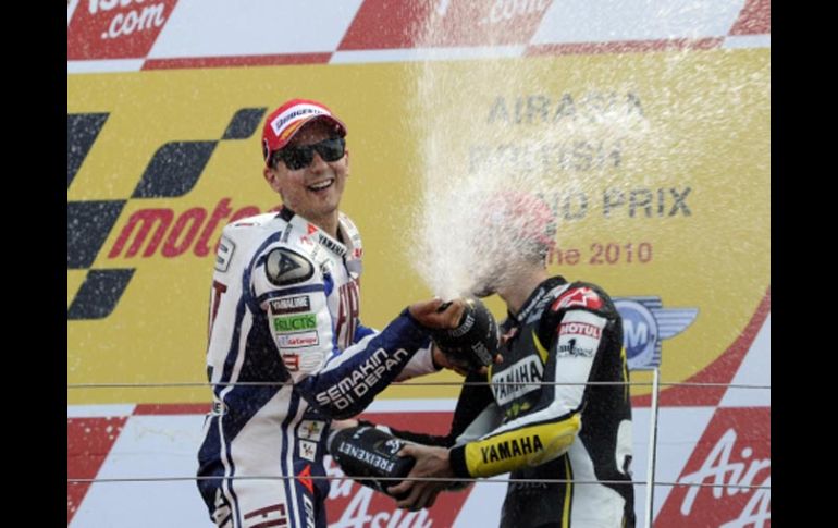 Deportes | Su más cercano perseguidor fue Andrea Dovizioso Lorenzo gana el GP de Silverstone El piloto español amplió su ventaja en el campeonato del Moto GP, que encabeza con 37 puntos Por: EFE 20 de junio de 2010 - 09:26 hs El motociclista español, Jorge Lorenzo, festeja el triunfo. AP / SILVERSTONE, REINO UNIDO (20/JUNIO/2010).- El español Jorge Lorenzo (Yamaha) se impuso en el Gran Premio de Gran Bretaña de MotoGP, en el circuito de Silverstone, y se destaca al frente de la clasificación del mundial con 37 puntos de ventaja sobre el segundo sitio. Tras el español se clasificaron el italiano Andrea Dovizioso (Honda), a más de seis segundos de Lorenzo, los estadounidense Ben Spies (Yamaha) y Nicky Hayden (Ducati) y el australiano Casey Stoner (Ducati). Otro español, Dani Pedrosa (Honda), entró en la octava plaza. Lorenzo tiene ya 37 puntos de ventaja sobre el segundo clasificado, Dovizioso, y 42 sobre Pedrosa, que venía de ganar el último Gran Premio disputado en Italia. Pedrosa sufrió ayer una dura caída en los entrenamientos oficiales y esta mañana se volvió a ir al suelo en la sesión de calentamiento. Con esta victoria, los españoles igualan una marca vigente desde 1999 cuando Alex Crivillé, ganador del Mundial de 500 c.c aquel año, sumó cuatro triunfos consecutivos en la categoría reina. Esta temporada las cuatro han sido entre dos pilotos, ya que Lorenzo se impuso en España y Francia, luego Pedrosa lo hizo en Italia y el de Palma de Mallorca repitió hoy en Silverstone. Temas Motociclismo Moto GP Jorge Lorenzo Lee También Sociales: El Informador inicia una nueva etapa con la moderna imprenta "Doña Stella" IberoMedia Global realiza su primer Encuentro Empresarial Internacional Aliados UNIVA fortalece lazos en la educación Fermín Aldeguer conquista el GP de Indonesia y entra en la historia de MotoGP Recibe las últimas noticias en tu e-mail Todo lo que necesitas saber para comenzar tu día Registrarse implica aceptar los Términos y Condiciones
