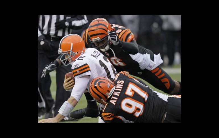 Deportes | Después de diez derrotas consecutivas, Cincinnati vence 19-17 a los Cafés Los Bengalíes salen de mala racha Después de diez derrotas consecutivas, Cincinnati vence 19-17 a los Cafés Por: AP 19 de diciembre de 2010 - 16:07 hs Los Bengalíes no ganaban desde el 26 de Septiembre. AP / CINCINNATI, OHIO (197DIC/2010).- El corredor Cedric Benson ganó 150 yardas por tierra, su mayor cifra en la temporada, y los Bengals de Cincinnati vencieron 19-17 a los Cafés de Cleveland al salir de una mala racha de 10 derrotas consecutivas que igualó la cadena negativa más larga en la historia de la franquicia. Los Bengalíes (3-11) no habían ganado desde el 26 de septiembre. Terrell Owens estuvo fuera de acción con una lesión de rodilla mirando la victoria largamente esperada. Los Cafés (5-9), por su parte, tuvieron su décima temporada perdedora en 12 años desde que regresaron como equipo de expansión. Cleveland anotó en un pase del novato Colt McCoy en una jugada de engaño y logró otro touchdown en una mala cobertura de los Bengalíes cuando restaban 2:13 minutos de juego. Sólo 56 mil 542 aficionados asistieron al estadio para presenciar la llamada ``Batalla de Ohio'', que fue el tercer juego seguido de los Bengalíes que no transmite la televisión local. Temas NFL Futbol Americano Bengalíes de Cincinnati Cafés de Cleveland Recibe las últimas noticias en tu e-mail Todo lo que necesitas saber para comenzar tu día Registrarse implica aceptar los Términos y Condiciones