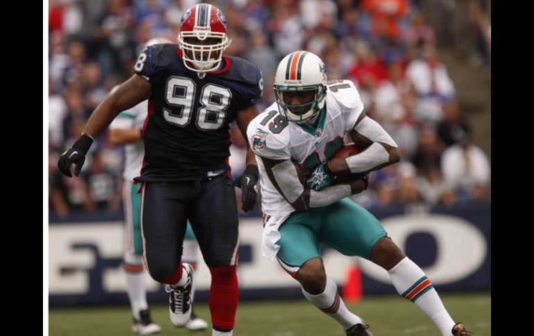 Deportes | El marcador final fue de 15-10 a favor de los de Florida Los Delfines debutan con victoria El equipo de Miami pudo sacar el partido en la visita al estadio de los Bills Por: NTX 12 de septiembre de 2010 - 14:40 hs Brandon Marshall del conjunto de los Delfines (der.) pone en aprietos a los Bufalos. AP / VISITE EL SITIO ESPECIAL DE LA NFL EN ESTE ENLACEORCHARD PARK, NUEVA YORK (12/SEP/2010).- El linebacker Karlos Dansby lideró la nueva defensa de Miami con ocho tackles y un derribo del quarterback rival, Ronnie Brown anotó con un acarreo desde una yarda y Dan Carpenter pateó dos goles de campo para que los Delfines derrotasen el domingo 15-10 a los Bills de Buffalo. Dansby fue la gran adquisición que hizo Miami en la agencia libre e incidió tremendamente en un partido en el que defensa de los Dolphins limitó en 166 yardas a los Bills. Después de cinco años de derrotas, los Delfines lograron finalmente ganar en la primera fecha de la temporada. Brown anotó al zambullirse desde una yarda y Carpenter pateó goles de campo de 32 y 43 yardas. Los Bills no lucieron bien ofensivamente en el debut de su técnico Chan Gailey. Buffalo apenas acumuló 72 yardas en sus primeras nueve posesiones hasta que el mariscal de campo Trent Edwards coronó una avance de 80 yardas al conectar con Roscoe Parrish para un pase de touchdown de 31 yardas. Temas NFL Futbol Americano Bills de Buffalo Delfines de Miami Recibe las últimas noticias en tu e-mail Todo lo que necesitas saber para comenzar tu día Registrarse implica aceptar los Términos y Condiciones