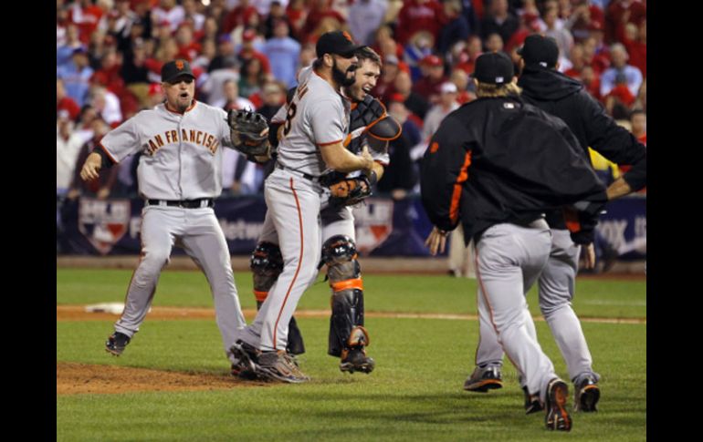 Deportes | La novena de San Francisco elimina a los Filis de Filadelfia y van a la Serie Mundial Los Gigantes dan la sorpresa La novena de San Francisco elimina a los Filis de Filadelfia y van a la Serie Mundial Por: NTX 23 de octubre de 2010 - 22:05 hs Los Gigantes celebran el pase a la serie mundial al vencer en al Serie de Campeonato de la Liga Nacional a los Filis. REUTERS / FILADELFIA, PENNSYLVANIA (21/OCT/2010).- Gigantes de San Francisco avanzó a la Serie Mundial 2010, al vencer por pizarra de 3-2 a Filis de Filadelfia, y sentenciar en 4-2 a su favor la Serie de Campeonato de la Liga Nacional. Ante un enmudecido Citizens Bank Park, Gigantes logró la hazaña de vencer al actual campeón del "viejo circuito", y así llegar al Clásico de Otoño 2010, donde enfrentará al monarca de la Americana, Rangers de Texas, que eliminó a Yanquis de Nueva York. El ganador resultó el puertorriqueño Javier López (1-0), mientras el valioso rescate se lo llevó Brian Wilson (3). La derrota se le aplicó a Ryan Madson (0-1). Filis inició con dos carreras en la primera entrada en su desesperación por ganar este juego y obligar así al séptimo y definitivo. Chase Utley, con un doblete, y Jayson Werth, con elevado de sacrificio, remolcaron el par para Filadelfia. Pero Gigantes no iba a perder la oportunidad de avanzar a la Serie Mundial 2010, y en la tercera empató 2-2 la pizarra. Primero Aubrey Huff pegó hit para remolcar al boricua Jonathan Sánchez y luego el propio Huff cruzó el plato para igualar. El conjunto de la bahía californiana tomó la ventaja en el marcador en 3-2 en la octava entrada, luego que el dominicano Juan Uribe (1) conectó un panorámico cuadrangular por el prado derecho, con el cual le dio el triunfo a San Francisco. Ya para amarrar el triunfo de Gigantes, Brian Wilson vino a la loma para secar los intentos desesperados de los bateadores de Filis, y así guardar la ventaja y el pase a la Serie Mundial 2010. Ahora, Gigantes recibirá a partir del próximo miércoles 27 en su AT&T Park de San Francisco, California, a Rangers de Texas, flamante monarca de la Liga Americana, en el arranque de la Serie Mundial 2010. Temas Beisbol MLB Gigantes de San Francisco Filis de Filadelfia Serie de Campeonato de la Liga Nacional Lee También Dirigente del PAN afirma que se defenderá "cualquier modelo de familia" ¿Dónde ver EN VIVO el partido de J14 Pumas vs San Luis? Municipios del Edomex que recibirán más agua del Sistema Cutzamala ¿Dónde ver EN VIVO el partido de J14 Xolos vs Toluca? Recibe las últimas noticias en tu e-mail Todo lo que necesitas saber para comenzar tu día Registrarse implica aceptar los Términos y Condiciones