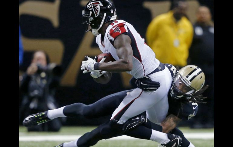 Deportes | Atlanta sigue en la puja por un boleto de playoffs al derrotar 30-14 a Nueva Orléans Los Halcones vencen a los Santos Atlanta sigue en la puja por un boleto de playoffs al derrotar 30-14 a Nueva Orléans Por: AP 21 de diciembre de 2014 - 15:30 hs Julio Jones regresa tras recuperarse de una lesión en la cadera y atrapa siete pases para 107 yardas. AP / B. Haber NUEVA ORLEÁNS, LOUISIANA (21/DIC/2014).- Julio Jones regresó tras recuperarse de una lesión de cadera y atrapó siete pases para 107 yardas, con lo que los Halcones de Atlanta siguieron en la puja por un boleto de playoffs al derrotar el domingo 30-14 a los Santos de Nueva Orleáns. Matt Ryan completó 30 de 40 pases para 322 yardas y una anotación, mientras que Devonta Freeman corrió para anotar en un acarreo de 31 yardas por Atlanta (6-9), que puede ganar el título en la División Sur de la Conferencia Nacional si vence a Carolina la semana próxima. Los Santos (6-9), que perdieron tres balones en el cuarto periodo, sufrieron su quinta derrota consecutiva como locales y quedaron eliminados. Jimmy Graham soltó un ovoide dentro de la yarda uno de Atlanta en los albores del último cuarto. Los Santos tuvieron la oportunidad de buscar la anotación que les diera el triunfo en los últimos tres minutos, pero Robert McClain interceptó un pase de Drew Brees en el territorio de Nueva Orleáns. Ello preparó la escena para un gol de campo, y Osi Umenyiora devolvió 86 yardas un balón soltado por Brees para un touchdown cuando el tiempo expiraba. Temas NFL Futbol Americano Halcones de Atlanta Santos de Nueva Orleans Lee También ¿Dónde ver EN VIVO el partido de J13 Toluca vs Querétaro? Liga MX: Horarios y canales de los partidos del 17 de octubre El Oviedo recibe a los Periquitos Futbol hoy 17 de octubre de 2025: ¿Dónde ver los partidos en vivo? Recibe las últimas noticias en tu e-mail Todo lo que necesitas saber para comenzar tu día Registrarse implica aceptar los Términos y Condiciones