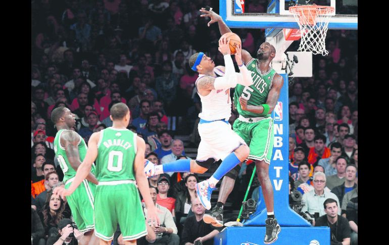 Deportes | Boston 78-85 Nueva York Los Knicks toman el primero El campeón encestador, Carmelo Anthony, guía a Nueva York para derrotar a Boston y debutar con un triunfo en la postemporada Por: EL INFORMADOR 21 de abril de 2013 - 02:07 hs Imparable. Carmelo Anthony (blanco) recibe una falta de Kevin Garnett (derecha) en su intento por anotar. EFE / NUEVA YORK, ESTADOS UNIDOS (21/ABR/2013).- Carmelo Anthony anotó 36 puntos y los Knicks de Nueva York vencieron el sábado por 85-78 a los Celtics de Boston en el primer partido de playoff. Luego de derribar a los Celtics de la cima de la División del Atlántico, los Knicks también dieron el primer paso para eliminarlos en la primera ronda de playoffs al contener a Boston a tres canastas y ocho puntos en el período final. Anthony, el líder anotador de la NBA, encestó apenas 13 de 29 intentos de campo, pero sumó ocho puntos en el cuarto período, incluyendo canastas consecutivas al final del período que le dio a los Knicks espacio para respirar en un partido apretado. El segundo partido de la serie será el martes, antes de que los Celtics sean anfitriones en el tercer enfrentamiento el viernes en lo que será su primer partido en casa desde los atentados en Boston. Los Celtics utilizaron un parche reconociendo la difícil semana en Boston luego de los atentados que dejaron tres personas muertas el lunes en el Maratón de la ciudad. “Boston se levantará y correrá de nuevo”, dijo Pierce. Los aficionados apoyaron a la ciudad de Boston pero no a los Celtics, tal como esperaba el entrenador Doc Rivers esperaba. Garnett fue abucheado, luego del enfrentamiento que tuvo con Anthony en la campaña regular. RESULTADOS En otras series Juego 1 • Golden State 95-97 Denver Juego 1 • Chicago 89-106 Brooklyn Temas NBA Basquetbol Celtics de Boston Recibe las últimas noticias en tu e-mail Todo lo que necesitas saber para comenzar tu día Registrarse implica aceptar los Términos y Condiciones