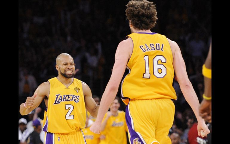 Deportes | Tras este triunfo, los Lakers quedan a tan sólo un título de los Boston Celtics Los Lakers logran el decimosexto título de su historia Celtics aún es el máximo ganadore en la historia de la NBA con 17 trofeos de campeones en sus vitrinas Por: EFE 17 de junio de 2010 - 22:07 hs Derek Fisher y Pau Gasol celebran el triunfo en el séptimo y definitivo juego de la Final de la NBA. AP / LOS ÁNGELES, CALIFORNIA (17/JUNIO/2010).- Los Ángeles Lakers lograron su segundo título consecutivo de campeones de la NBA, el decimosexto de su historia, al imponerse en el séptimo partido de la serie final a los Boston Celtics por 83-79. Tras este triunfo, logrado en el Staples Center de la ciudad californiana, los Lakers quedan a tan sólo un título de los Boston Celtics, dominadores en la historia de la NBA con 17 trofeos de campeones en sus vitrinas. - Así fue la serie final: 1er. partido. En Los Ángeles (03-06-2010) Los Ángeles Lakers, 102 - Boston Celtics, 89 (1-0) 2º partido. En Los Ángeles (06-06-2010) Los Ángeles Lakers, 94 - Boston Celtics, 103 (1-1) - 3er. partido. En Boston (06-06-2010) Boston Celtics, 84- Los Ángeles Lakers, 91 (1-2) - 4º partido. En Boston (10-06-2010) Boston Celtics, 96 - Los Ángeles Lakers, 89 (2-2) - 5º partido: En Boston (13-06-2010) Boston Celtics, 92 - Los Ángeles Lakers, 86 (3-2) 6º partido: En Los Ángeles (15-06-2010) Los Ángeles Lakers, 89 - Boston Celtics, 67 (3-3) 7º partido. En Los Ángeles (17-06-2010) Los Ángeles Lakers, 83 - Boston Celtics, 79 (4-3 Temas NBA Basquetbol Lakers de Los Ángeles Celtics de Boston Recibe las últimas noticias en tu e-mail Todo lo que necesitas saber para comenzar tu día Registrarse implica aceptar los Términos y Condiciones