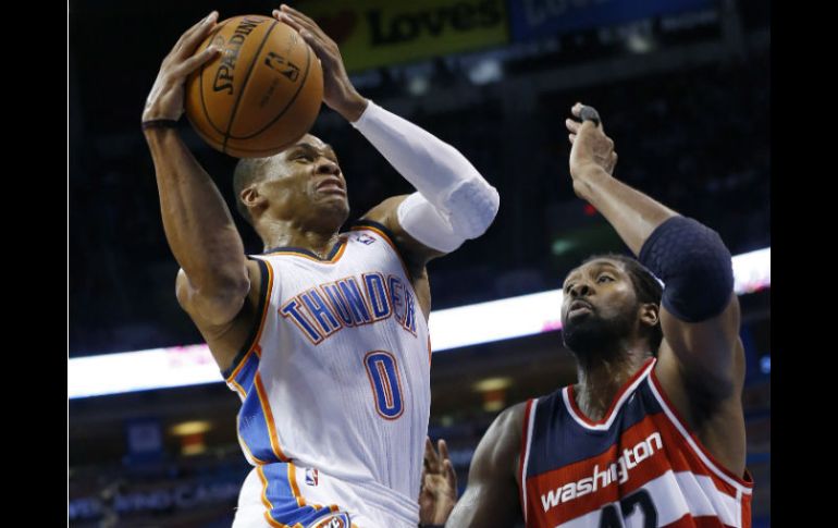 Deportes | El equipo de Oklahoma derrota 106-105 al de Washington Los Thunder vencen a los Wizards Con un partido reñido, el equipo de Oklahoma logra derrotar al de Washington en tiempo extra Por: EFE 10 de noviembre de 2013 - 21:20 hs Russell Westbrook de los Thunder durante el partido contra los Wizards. AP / WASHINGTON, ESTADOS UNIDOS (10/NOV/2013).- La combinación del alero Kevin Durant y del ala-pívot congoleño, nacionalizado español, Serge Ibaka, fue la clave que permitió a los Thunder de Oklahoma City vencer en la prórroga por 106-105 a los Wizards de Washington. El trabajado triunfo de los Thunder llegó después de que remontasen 10 puntos (82-92) en los últimos tres minutos y medio del partido. Durant aportó 33 tantos y fue el líder encestador del equipo de Oklahoma City, que lograron la cuarta victoria consecutiva. Durant, que anotó 12 de 23 tiros de campo, encestó un triple a falta de 13 segundos para que concluyese el tiempo reglamentario y logró el empate a 96-96 con el que forzó la prórroga. Antes lideró la racha de 14-4 de los Thunder que les permitió dar la vuelta al marcador y mantenerse en el partido. Durant puso en la prórroga un tapón al base John Wall, siguió con canasta, y lanzó dos tiros de personal a falta de 40.7 segundos que dieron ventaja parcial a los Thunder (106-105) y sería la definitiva. Junto a Durant, Ibaka aportó otro doble-doble de 25 puntos --mejor marca en lo que va de temporada--, y 12 rebotes que le dejaron como el ganador del duelo individual que protagonizó con el ala-pívot brasileño Nené Hilario. Ibaka jugó 46 minutos anotó 11 de 18 tiros de campo, falló un intento de triple, y acertó 3 de 4 tiros de personal, El jugador internacional español capturó 8 rebotes defensivos y puso tres tapones que lo dejaron como el líder del equipo en esa faceta del juego. El base Russell Westbrook no estuvo acertado en sus lanzamiento al fallar 12 de 16 tiros de campo y solo anotar 3 de 7 triples. Sumó 13 puntos, uno más de los que aportó el reserva y sexto jugador, Reggie Jackson (12), que también capturó siete rebotes, repartió cuatro asistencias y recuperó dos balones. Beal fue el líder encestador del partido y de los Wizards con 34 puntos, su mejor marca como profesional, y encabezó una lista de seis jugadores, incluidos los cinco titulares, que tuvieron números de dos dígitos. El escolta-alero de origen dominicano Trevor Ariza consiguió 15 puntos, mientras que Hilario llegó a los 14 en los 25 minutos que jugó. Hilario anotó 5 de 6 tiros de campo y 4 de 10 desde la línea de personal, capturó siete rebotes, repartió seis asistencias y puso un tapón. El pívot polaco Marcin Gortat y el ala-pívot Al Harrington, que salió de reserva, anotaron 11 tantos cada uno. Bledsoe encabeza victoria de Suns sobre Pelicans Eric Bledsoe anotó 24 puntos y Markieff Morris contribuyó con 23 como reserva para guiar el domingo a los Suns de Phoenix a una victoria por 101-94 sobre los Pelicans de Nueva Orleans. Morris acertó nueve de 12 tiros de campo y ha encestado 30 de 38 en sus últimos tres partidos, promediando 24,7 puntos en ese lapso. Gerald Green encestó 15 unidades y Goran Dragic agregó 12 por los Suns, que han ganado cuatro de sus últimos cinco encuentros. El entrenador en jefe de los Suns Jeff Hornacek se convirtió en el primero en la historia de la franquicia que gana sus primeros cuatro partidos en casa. Jason Smith anotó 22 puntos por los Pelicans, mientras que Jrue Holiday y Anthony Morrow encestaron 16 cada uno. Con información de Efe y AP. Temas NBA Basquetbol Washington Wizards Thunder de Oklahoma Recibe las últimas noticias en tu e-mail Todo lo que necesitas saber para comenzar tu día Registrarse implica aceptar los Términos y Condiciones