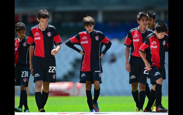 Los jugadores Sub-13 se lamentan de la derrota en la final ante los Tuzos. MEXSPORT /