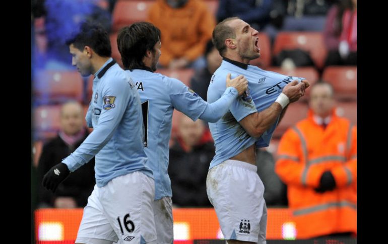 Deportes | Anota gol al Stoke a los 85 minutos de juego Man City avanza a quinta ronda en Copa FA El argentino Pablo Zabaleta anota en los minutos finales y Manchester City vence el sábado 1-0 a Stoke Por: AP 26 de enero de 2013 - 10:24 hs Jugadores del Manchester City celebran su triunfo sobre el Stoke. AP / LONDRES, INGLATERRA (26/ENE/2013).- El argentino Pablo Zabaleta anotó en los minutos finales y Manchester City venció el sábado 1-0 a Stoke para avanzar a la quinta ronda de la Copa de la FA. El zaguero empujó el balón al fondo de las redes a los 85 minutos, después que Edin Dzeko alargó un centro del argentino Sergio Agüero. En otros partidos por la cuarta ronda, Manchester United recibe a Fulham y Arsenal enfrenta al Brighton de la segunda división. Temas Futbol Internacional Futbol Inglés Manchester City Recibe las últimas noticias en tu e-mail Todo lo que necesitas saber para comenzar tu día Registrarse implica aceptar los Términos y Condiciones