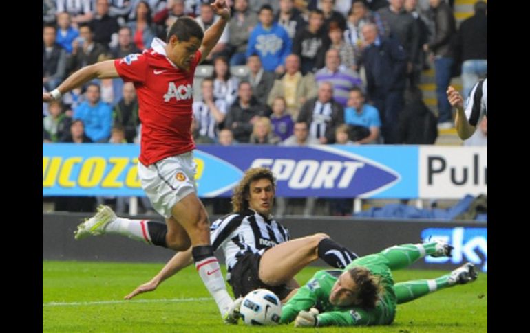 Deportes | Los 'Red Devils' fueron incapaces de sacar los tres puntos de su visita, quedando 0-0 ManU no pudo con el Newcastle Los 'Red Devils' fueron incapaces de sacar los tres puntos de su visita, quedando 0-0 Por: EFE 19 de abril de 2011 - 14:55 hs Javier 'Chicharito' Hernández durante el encuentro ante el Newcastle en la Premier League. REUTERS / LEA EL MINUTO A MINUTO DE ESTE PARTIDO NEWCASTLE, INGLATERRA (19/ABR/2011).- El Manchester United fue incapaz de sacar los tres puntos de su visita al campo del Newcastle (0-0), aplazó la sentencia a la Liga y aumentó las expectativas de su perseguidor, el Arsenal. El United, que recuperó a su líder, Wayne Rooney, se estrelló ante la resistencia de un rival que pretende sellar su permanencia en la categoría y que tuteó al gigante de Alex Ferguson. El Manchester United, líder de la Premier, aventaja en siete puntos al Arsenal, que puede situarse a cuatro si gana el miércoles su duelo en el campo del Tottenham. Además, en dos jornadas, el equipo de Arsene Wenger y el de Ferguson se verán las caras. El United, no obstante, disfrutó de las ocasiones más claras. Nada más empezar el mexicano 'Chicharito' Hernández no pudo aprovechar un gran centro de Rooney. Después, el propio Rooney envió alto dos disparos que apuntaban a gol. El Newcastle buscó sus opciones. El irlandés Stephen Ireland, que debutó con el Newcastle, estuvo a punto de sorprender al holandés Van der Sar en su primera acción tras sustituir al danés Peter Lovenkrands. -- Ficha técnica: 0 - Newcastle: Krul, Coloccini, Jose Enrique, Williamson, Simpson, Barton, Guthrie, Gutiérrez, Tiote, Lovenkrands (Ireland, m.69) y Ameobi (Ranger, m.72). 0 Manchester United: Van der Sar, Evra, Smalling, Vidic, O'Shea, Anderson (Antonio Valencia, m.70), Giggs, Carrick, Nani (Owen, m.80), Rooney y Hernández. Árbitro: Lee Probert. Mostró tarjeta amarilla a Carrick y Chicharito Hernández, del Manchester United, y a Tiote y Williamson, del Newcastle. Incidencias: encuentro correspondiente a la trigésima tercera jornada de la Liga de Inglaterra disputado en el estadio St James Park Temas Liga Premier Futbol Internacional Manchester United Lee También Futbol hoy 14 de octubre de 2025: ¿Dónde ver los partidos en vivo? Drama en la frontera con “La Gloria” Javier Aguirre asegura que realizará siete u ocho cambios ante Ecuador Julián Quiñones vuelve a lucir la camiseta del Atlas Recibe las últimas noticias en tu e-mail Todo lo que necesitas saber para comenzar tu día Registrarse implica aceptar los Términos y Condiciones