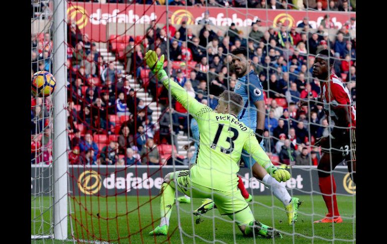 SUNDERLAND, INGLATERRA (05/MAR/2017).- Manchester City sigue aferrado a la segunda posición de la Liga Premier, al vencer 2-0 en calidad de visitante al Sunderland, en duelo disputado en el Stadium of Light, en la jornada 27. El conjunto "citizens" tuvo un buen desempeño en el cotejo y con los tantos del argentino Sergio "Kun" Agüero, que tomó la ventaja en el minuto 42, y del germano Leroy Sané puso las cosas 2-0 en el minuto 59. Con este resultado, el conjunto del español Josep Guardiola se aferra al subliderato general, luego de arribar a 58 unidades y bajar al tercer sitio al Tottenham Hotspur, que se había hecho de esa posición (56), en tanto Sunderland sigue de sotanero (19). A pesar de que el primer tanto cayó hasta casi terminada la primera mitad, con el tanto del pampero, era solo cuestión de tiempo para que la visita impusiera condiciones ante un rival que se hunde en el fondo de la tabla y se ahoga en el descenso. Las cosas estuvieron del lado del Manchester, que con la ventaja, comenzó a manejar el encuentro y a jugar con la desesperación del Sunderland que sin orden se fue en busca del arco rival pero no supo cómo terminar sus llegadas.