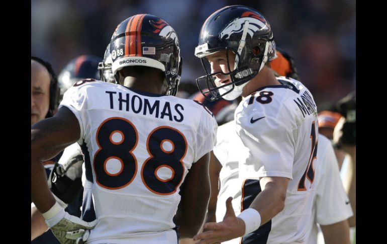 Deportes | Peyton Manning lanza para cuatro anotaciones y los Broncos ganan 28-20 a Cargadores Manning continúa imparable en otra victoria de Denver Peyton Manning lanza para cuatro anotaciones y los Broncos ganan 28-20 a Cargadores Por: AP 10 de noviembre de 2013 - 18:16 hs Peyton Manning y Demaryius Thomas se conectaron para tres anotaciones. AP / SAN DIEGO, CALIFORNIA (10/NOV/2013).- Peyton Manning lanzó para 330 yardas y cuatro anotaciones, tres de ellas conseguidas por Demaryius Thomas, y los Broncos doblegaron el domingo 28-20 a los Cargadores de San Diego, en el primer partido de Denver desde que su entrenador John Fox se sometió a una cirugía del corazón. Fox, dado de alta el viernes, planeaba ver el encuentro por televisión desde su casa de descanso en Charlotte, Carolina del Norte, dijo un portavoz del equipo. Con el entrenador interino Jack del Río a cargo, Manning mantuvo a los Broncos (8-1) a todo galope. Lanzó pases de anotación de 11, 7 y 34 yardas a Thomas en ofensivas consecutivas entre el segundo y el tercer cuarto. Julius Thomas también recibió un pase y corrió 74 yardas para anotación en la primera ofensiva de Denver. Las series ofensivas que derivaron en anotaciones de los Broncos duraron 57 segundos, 2 minutos 27 segundos, 1:25 minutos, y 3:26 minutos. Manning ha lanzado para tres mil 249 yardas y 33 anotaciones en nueve partidos. San Diego cayó a 4-5. Temas NFL Futbol Americano Cargadores de San Diego Broncos de Denver Lee También Futbol hoy 16 de octubre de 2025: ¿Dónde ver los partidos en vivo? Atlas Femenil paga caro un error y ve alejarse la Liguilla ante América Cada partido será una final para nosotros: Diego Cocca México encadena cuatro partidos sin ganar, algo que no sucedía desde 2021 Recibe las últimas noticias en tu e-mail Todo lo que necesitas saber para comenzar tu día Registrarse implica aceptar los Términos y Condiciones