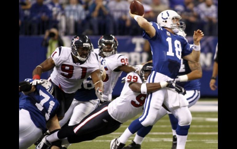 Deportes | Los Potros triunfaron 30-17 ante Houston con lo que logran empatar la serie Manning impuso su clase en la victoria de Indianapolis Los Potros triunfaron 30-17 ante Houston con lo que logran empatar la serie Por: AP 2 de noviembre de 2010 - 14:03 hs Peyton Manning estuvo a punto de dejar sin aire a la defensiva de los Texanos. REUTERS / INDIANAPOLIS, INDIANA (02/NOV/2010).- Peyton Manning puso a trabajar a la ofensiva de Indianápolis hasta casi dejarla sin aire. El cuatro veces Jugador Más Valioso lanzó para dos touchdowns, y luego vio a Mike Hart correr por primera vez 84 yardas y a Jacob Tamme anotar el primer touchdown de su trayectoria para guiar a los Potros de Indianápolis al triunfo por 30-17 sobre los Texanos de Houston. La victoria le permitió a los Potros (5-2) empatar la serie contra Houston (4-3) y le dio a los campeones defensores de la Conferencia Americana el liderato solitario en la División Sur por primera vez en la temporada. Y aunque los Potros jugaron sin el tight end estelar Dallas Clark, el receptor Austin Collie y el running back Joseph Addai por lesiones, Manning y sus compañeros no los extrañaron esta vez. “Quien quiera que esté presente tiene que encontrar la manera de hacer el trabajo'', dijo Manning. “No siempre va a ser bonito, pero tenemos que seguir esforzándonos y realizando algunas jugadas''. Manning completó 26 de 45 pases para ganancia de 268 yardas. Hart corrió con la misma determinación que utilizó para convertirse en el líder de Michigan y proporcionó a los Potros uno de sus buenos partidos por tierra, mientras que Tamme, remplazo de Clark, atrapó seis pases para avance de 64 yardas. Pero no sólo los jugadores nuevos realizaron jugadas importantes, ni tampoco únicamente la ofensiva. Reggie Wayne atrapó un pase para anotación, Manning corrió para un primero y diez por primera ocasión en casi dos años, e incluso fue el principal bloqueador en un pase corto y carrera de Pierre Garcon en el tercer cuarto. Temas NFL Futbol Americano Potros de Indianápolis Texanos de Houston Lee También La NFL suspende a Brian Branch por golpear a jugador de Chiefs NFL: Resultados del Monday Night Football Futbol hoy 14 de octubre de 2025: ¿Dónde ver los partidos en vivo? Javier Aguirre asegura que realizará siete u ocho cambios ante Ecuador Recibe las últimas noticias en tu e-mail Todo lo que necesitas saber para comenzar tu día Registrarse implica aceptar los Términos y Condiciones