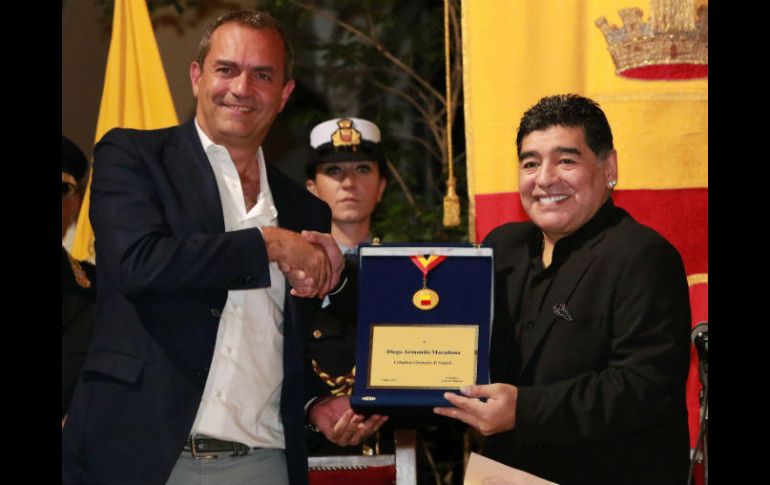 ROMA, ITALIA (05/JUL/2017).- El argentino Diego Armando Maradona recibió y besó hoy el documento de la ciudadanía honorífica de Nápoles, que le fue entregado oficialmente por el alcalde de la ciudad en la que hizo historia en su carrera de futbolista entre 1984 y 1991."Cuando voy por el mundo, siempre veo las pancartas que llevan escrito 'quien te ama no se olvida'. No hay un pueblo que me quiso tanto como ustedes los napolitanos", aseguró Maradona tras recibir la ciudadanía honorífica en el Palacio San Giacomo de Nápoles.La leyenda argentina dijo que este reconocimiento significa el triunfo de la democracia, refiriéndose a los que en los últimos días mostraron su malestar por el evento."Gracias también a los que no querían que yo fuera ciudadano napolitano, porque así se demuestra que hay democracia y que siempre ganarán los que hicimos algo por esta ciudad", declaró.En su discurso, Maradona subrayó que se sintió napolitano desde el primer día en el que llegó al club italiano y que el acto de hoy es algo que confirma esa sensación.Por su parte, el alcalde napolitano, Luigi De Magistris, definió al argentino como "el futbolista más grande de todos los tiempos" y le entregó, además del documento de la ciudadanía, una medalla oficial de la ciudad sureña.El evento empezó pasadas las 21.00 locales (14:00 del centro de México) y duró unos quince minutos, antes de que Maradona dejara el Ayuntamiento para desplazarse a la plaza del Plebiscito, donde le esperan miles de seguidores para homenajearlo.El argentino recordará algunas anécdotas sobre el histórico título liguero conquistado en 1987, junto a algunos de sus ex compañeros, como Ciro Ferrara, Giuseppe Bruscolotti o Bruno Giordano.