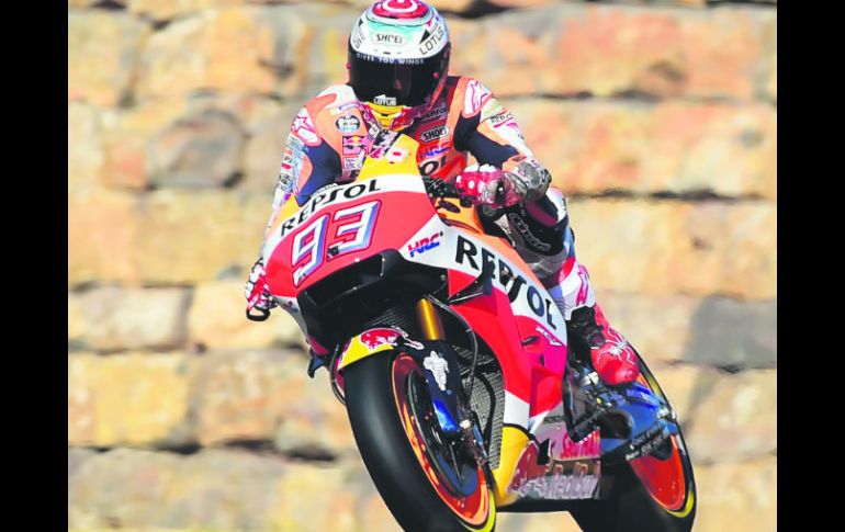 ALCAÑIZ, ESPAÑA (25/SEP/2016).- El español Marc Márquez (Honda) partirá desde la “pole position” hoy en el Gran Premio de Aragón de MotoGP, al ser el más rápido ayer en la clasificación disputada en el circuito de Motorland, en Alcañiz.En el camino hacia su tercer título de campeón del mundo, el líder del Mundial finalizó con un minuto, 47 segundos y 117 milésimas, por delante de sus compatriotas Maverick Viñales (Suzuki), a 631 milésimas, y el vigente campeón mundial Jorge Lorenzo (Yamaha), a 661.Segundo en el Mundial a 43 puntos de Márquez, la leyenda italiana Valentino Rossi (Yamaha) se tuvo que conformar con la sexta plaza, a 834 milésimas de la pole.En la segunda línea de salida para hoy estarán además de Rossi el italiano Andrea Dovizioso (Ducati), que fue cuarto, y el inglés Cal Crutchlow (Honda), que finalizó quinto.El español Dani Pedrosa, ganador hace dos semanas en San Marino, fue séptimo y saldrá desde la tercera línea.
