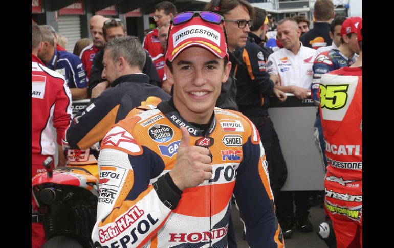 Deportes | El piloto español consigue el mejor tiempo en el circuito de Phillip Island Marc Márquez saldrá en pole position Australia El piloto español consigue el mejor tiempo en el circuito de Phillip Island Por: AP 18 de octubre de 2014 - 00:06 hs Márquez logra su décimo segunda pole de la temporada, e iguala el récord de los australianos Mick Doohan y Casey Stoner. AP / R. Griffith PHILLIP ISLAND, AUSTRALIA (18/OCT/2014).- El piloto español Marc Márquez (Honda) saldrá de la pole position el domingo en el Gran Premio de MotoGP de Australia, 16ª carrera del mundial, tras firmar este sábado el mejor tiempo en las calificaciones en el circuito de Phillip Island. Márquez, que se coronó campeón del mundo 2014 la semana pasada en el Gran Premio de Japón, hizo su mejor vuelta en un minuto, 28 segundos y 408 milésimas, superando por 234 milésimas al británico Cal Crutchlow (Ducati) y por 242 al español Jorge Lorenzo (Yamaha), que completarán la primera línea de largada el domingo. Con ésta, Márquez logra la 12ª pole de la temporada, e iguala el récord de los australianos Mick Doohan y Casey Stoner. Después de que el piloto catalán se asegurara su segundo título mundial consecutivo, lo que está en juego ahora es el subcampeonato, al que aspiran Lorenzo, Dani Pedrosa (Honda) y Valentino Rossi (Yamaha). El domingo, Pedrosa saldrá quinto y Rossi octavo. - Clasificación de MotoGP del Gran Premio de Australia, que se disputará el domingo en el circuito de Phillip Island: 1ª línea 1. Marc Márquez (ESP/Honda) 1min 28.408 seg 2. Cal Crutchlow (GBR/Ducati) a 0.234 3. Jorge Lorenzo (ESP/Yamaha) 0.242 2ª línea 4. Bradley Smith (GBR/Monster Yamaha Tech) 0.248 5. Dani Pedrosa (ESP/Honda) 0.267 6. Aleix Espargaró (ESP/Forward Yamaha) 0.458 3ª línea 7. Andrea Iannone (ITA/Ducati Pramac) 0.479 8. Valentino Rossi (ITA/Yamaha) 0.548 9. Pol Espargaró (ESP/Yamaha Tech3) 0.560 4ª línea: 10. Andrea Dovizioso (ITA/Ducati) 0.680 11. Stefan Bradl (GER/Honda-LCR) 0.747 12. Hiroshi Aoyama (JPN/Honda Aspar) 1.547 5ª línea: 13. Scott Redding (Honda Gresini) 14. Héctor Barberá (ESP/Ducati Avintia) 15. Nicky Hayden (USA/Honda Aspar) Temas Motociclismo Moto GP Lee También Fermín Aldeguer conquista el GP de Indonesia y entra en la historia de MotoGP Retiran motos y autos por rodadas clandestinas en Guadalajara ¿A qué hora es y dónde ver EN VIVO el GP de Singapur 2025 de F1? Pecco gana y Marc se corona campeón en Japón Recibe las últimas noticias en tu e-mail Todo lo que necesitas saber para comenzar tu día Registrarse implica aceptar los Términos y Condiciones