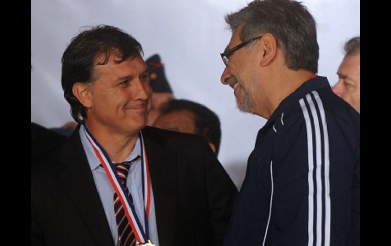 Deportes | Desmiente que tiene ofertas en otras Selecciones Martino decidirá su continuidad en agosto El aún técnico de la Selección de Paraguay, afirmó que su continuidad al frente del equipo depende solamente de él Por: EFE 8 de julio de 2010 - 09:54 hs El selecionador paraguayo Martino conversa con el presidente del país de la Selección Fernando Lugo. AFP / ASUNCIÓN, PARAGUAY (08/JUL/2010).- El argentino Gerardo Martino afirmó hoy que su continuidad como seleccionador de fútbol de Paraguay tras el Mundial de Sudáfrica depende exclusivamente de él y que tomará una decisión en agosto próximo. "La decisión pasa pura y exclusivamente por mí", señaló Martino en declaraciones telefónicas a la televisión desde Rosario, su ciudad natal, donde se encuentra de vacaciones luego de que la Albirroja avanzara por primera vez a los cuartos de final en un Mundial. El estratega negó, asimismo, que le hayan ofrecido la dirección de otros equipos nacionales como el Argentina, Chile o México como señala la prensa y dejó entrever que renovaría su contrato al menos para la Copa América de 2011, que tendrá lugar en Argentina. "Yo jamás hablé de que tenga ofertas, nunca hablé absolutamente nada", enfatizó Martino al explicar que su continuidad fue planteada por las autoridades de la Asociación Paraguaya de Fútbol mucho antes de la disputa del Mundial de Sudáfrica. Añadió que su permanencia al frente de la Albirroja tampoco está vinculada a la ratificación en el cargo del director del Departamento de Selección, Horacio Cartes, que a la vez preside el Libertad, equipo con el que Martino obtuvo sus primeros éxitos: tres títulos de liga entre 2002 y 2003. Temas FIFA Mundial de Sudáfrica 2010 Selección de Paraguay Recibe las últimas noticias en tu e-mail Todo lo que necesitas saber para comenzar tu día Registrarse implica aceptar los Términos y Condiciones
