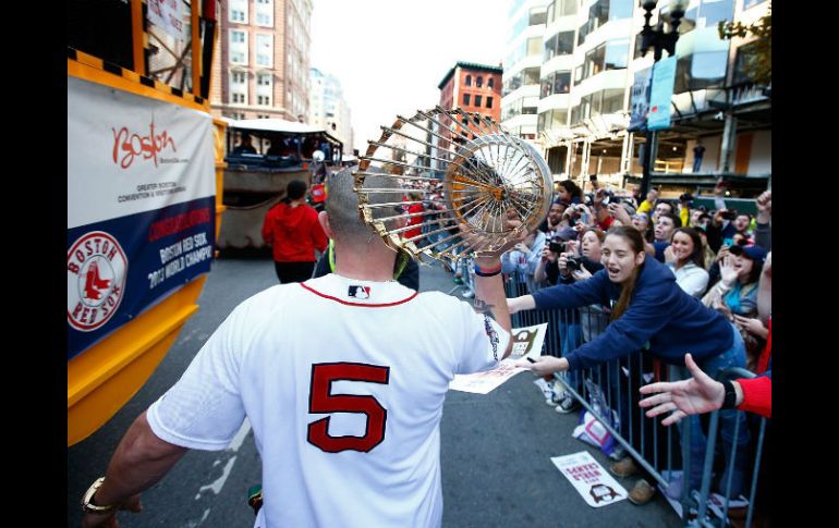Deportes | Jugadores y aficionados celebran el título de la Serie Mundial Medias Rojas de Boston festeja con los aficionados Los peloteros, todavía sin afeitarse sus barbas, abordaron 25 vehículos junto con el manager John Farrell, coaches y otros oficiales del equipo Por: AP 2 de noviembre de 2013 - 11:57 hs En un día cálido y soleado, la ruta del desfile incluía un tramo por el río Charles, entre Boston y Cambridge. AFP / BOSTON, ESTADOS UNIDOS (02/NOV/2013).- Los Medias Rojas de Boston emprendieron un desfile desde el Monstruo Verde hasta el río Charles para festejar su inesperado título de Serie Mundial. La fiesta comenzó el sábado en el Fenway Park, tres días después que el equipo conquistó la Serie Mundial con un triunfo por 6-1 sobre los Cardenales de San Luis en el sexto partido. Esa victoria coronó un extraordinario repunte luego de la pésima campaña de 2012, cuando Boston tuvo su peor marca en casi medio siglo. Los peloteros, todavía sin afeitarse sus barbas, abordaron 25 vehículos anfibios junto con el manager John Farrell, coaches y otros oficiales del equipo. Los vehículos se detuvieron al llegar al punto donde se encuentra la meta del Maratón de Boston, todavía pintado azul y amarillo, y donde tres espectadores murieron en un atentado con bombas el 15 de abril. El jardinero Jonny Gomes colocó el trofeo de Serie Mundial en la raya, y junto con el catcher Jarrod Saltalamacchia, levantaron camisetas de los Medias Rojas con las palabras "BOSTON STRONG" y el número 617, el código de área de la ciudad. Antes de salir de Fenway, Farrell recordó que el día del atentado, los Medias Rojas salieron hacia el aeropuerto después de un partido. De camino, vieron vehículos de emergencia respondiendo a las explosiones. "Sabiendo que íbamos a salir de la ciudad, eso iba a provocar mucha incertidumbre en ese momento", señaló Farrell. "Nadia sabía qué iba a pasar. Así que fuimos afortunados porque quizás ayudamos un poco en el proceso de recuperación". "Jugamos por toda la ciudad, por lo que pasó la ciudad", agregó el intermedista Dustin Pedroia. En un día cálido y soleado, la ruta del desfile incluía un tramo por el río Charles, entre Boston y Cambridge. Los abonados pudieron entrar a Fenway para una ceremonia antes del desfile en la que hablaron Farrell y varios jugadores. Temas Beisbol MLB Medias Rojas de Boston Lee También Charros de Jalisco arranca temporada de LMP con derrota ante los Águilas Resultados de las Series de Campeonato: Los Azulejos despiertan y aplastan a Seattle Dónde ver EN VIVO los juegos de MLB, HOY 15 de octubre Resultados de las Series de Campeonato: Dodgers vuelven a castigar a Cerveceros Recibe las últimas noticias en tu e-mail Todo lo que necesitas saber para comenzar tu día Registrarse implica aceptar los Términos y Condiciones