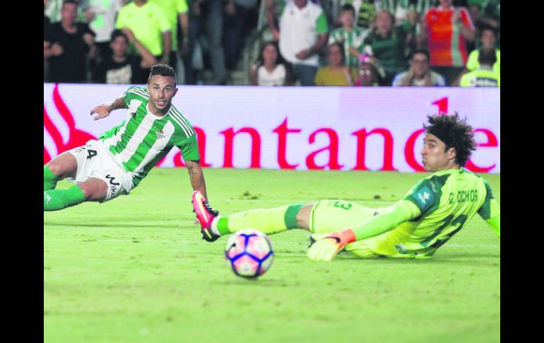 SEVILLA, ESPAÑA (17/SEP/2016).- Con una excepcional actuación el portero mexicano Guillermo Ochoa colaboró para que Granada rescatara el empate 2-2 ante Real Betis, en el marco de la Jornada 4 de la Primera División de España.Luego de haberse hecho blanco de diversas críticas durante su última actuación en Liga, para este cotejo “Memo” Ochoa mostró una cara diferente y respondió en la portería con tres atajadas que influyeron en beneficio de los suyos.Al minuto 13 Granada se puso por delante 1-0 cortesía del marroquí Mehdi Carcela, quien con su gol alentó a los “Nazaríes” a volcarse al ataque para aumentar su ventaja 2-0 por conducto del delantero Alberto Bueno. Sin embargo, tres minutos más tarde el guardameta mexicano recibió su primer tanto en contra luego de que el delantero Alexander Alegría definiera de cabeza muy cerca de su marco. Pese a ello el tricolor se repuso rápidamente y al 39’ mantuvo la ventaja de su equipo con una parada que le valió ganarse los aplausos de la afición.La insistencia en el ataque por parte del Betis cobró frutos al minuto 61, luego de que Alegría marcara su segunda diana para emparejar el partido.