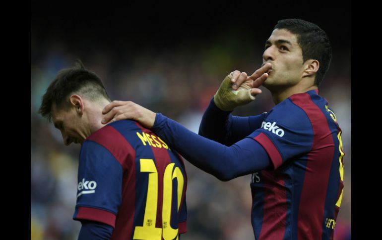 Deportes | Llegan a la cima al golear por 6-1 al Rayo Vallecano Messi y Suárez impulsan liderato del Barcelona Llegan a la cima de la Liga española al golear por 6-1 al Rayo Vallecano; Javier Aquino jugó 21 minutos Por: AFP 8 de marzo de 2015 - 06:51 hs Los sudamericanos del Barsa se lucieron con un partidazo. AFP / L. Gene BARCELONA, ESPAÑA (08/MAR/2015).- El FC Barcelona goleó este domingo al Rayo Vallecano (6-1) gracias a una gran actuación del delantero argentino Lionel Messi, que firmó un triplete, y es el nuevo líder del campeonato español con un punto de ventaja sobre el Real Madrid. El Barça no tuvo problemas para deshacerse de un Rayo Vallecano que solo plantó cara durante la primera parte del encuentro. Los goles del astro argentino (56 penal, 63, 68), el doblete del delantero uruguayo Luis Suárez (5, 90+1), que firmó un gran encuentro, y el tanto del central Gerard Piqué (49), hacen buena la derrota del Real Madrid ante el Athletic (1-0) en la víspera. Con este triplete, Messi alcanza al portugués del Real Madrid Cristiano Ronaldo en la cabeza de la lista de máximos goleadores con 30 tantos cada uno. El FC Barcelona, líder por primera vez desde principios de noviembre, supera en la clasificación a sus máximos rivales a dos semanas del Clásico que les enfrentará en la ciudad condal. Este domingo se juegan los encuentros entre Real Sociedad-Espanyol, Villarreal-Celta y cerrará el día (20h00 GMT) el duelo entre el tercer clasificado, Atlético Madrid y Valencia (4º). - Ficha técnica: 6 - Barcelona: Bravo; Alves, Piqué, Mathieu, Jordi Alba (Adriano, min.68), Mascherano (Rakitic, min.60), Xavi, Iniesta (Rafinha, min.65), Messi, Luis Suárez y Pedro. 1 - Rayo Vallecano: Cristian Álvarez; Tito, Amaya, Abdoulaye, Insúa, Trashorras, Jozabez (Quini, min.64), Licá (Aquino, min.69), Buena, Kakuta y Baptistao (Manucho, min.81). Goles: 1-0: Luis Suarez, min.5. 2-0: Piqué, min.49. 3-0: Messi (p), min.56. 4-0: Messi, min.63. 5-0: Messi, min.68. 5-1: Bueno (p), min.82. 6-1: Luis Súarez, (90+1). Árbitro: Gil Manzano (Comité extremeño). Mostró tarjeta amarilla a Mascherano (min.29), Trashorras (min.55), Jordi Alba (min.56), Aquino (min.84) y Adriano (min.90) y expulsó por doble amonestación a Tito (min.27 y 54) y con roja directa a Alves (min.80). Con información de AFP y EFE. Temas Futbol Español Futbol Internacional Barcelona Lionel Messi Luis Suárez Lee También ¿Dónde ver EN VIVO el partido de J14 Pumas vs San Luis? ¿Dónde ver EN VIVO el partido de J14 Xolos vs Toluca? FOX One: La nueva plataforma que transmitirá la Liga MX y otras competencias ¿Dónde ver EN VIVO el partido de J14 Atlas vs León? Recibe las últimas noticias en tu e-mail Todo lo que necesitas saber para comenzar tu día Registrarse implica aceptar los Términos y Condiciones