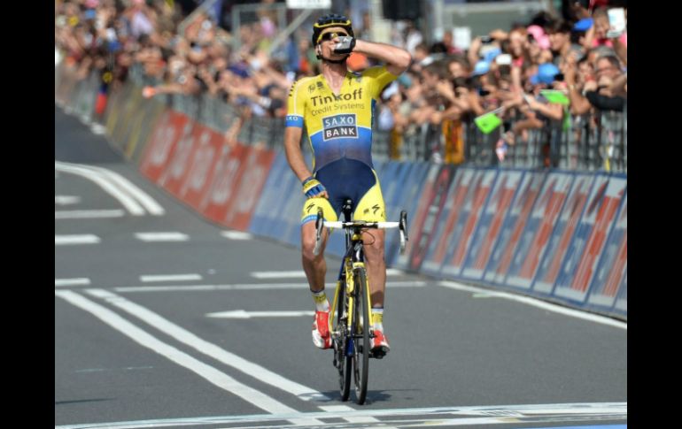 Deportes | Rogers llegó a la meta en primer sitio con tiempo de 5h:48.08 Michael Rogers gana etapa 11 del Giro de Italia Rogers llegó a la meta en primer sitio con tiempo de 5h:48.08 Por: EFE 21 de mayo de 2014 - 09:36 hs Rogers aventajó con ocho segundos al grupo que lo perseguía y llegó solo a la meta. AFP / SAVONA, ITALIA (21/MAY/2014).- El australiano Michael Rogers (Tinkoff Saxo) se ha impuesto en la undécima etapa del Giro de Italia disputada entre Collecchio y Savona, de 249 kilómetros, en la que su compatriota Cadel Evans (BMC) mantuvo la "maglia" rosa de líder. Rogers atacó en el descenso del puerto de segunda Naso di Gatto, a 27 kilómetros de meta y desde entonces hizo una contrarreloj en solitario para ganar con un tiempo de 5h.48.08, ocho segundos delante del grupo perseguidor donde viajaba la "maglia" rosa, Cadel Evans, quien mantuvo las diferencias en la general. Mañana se disputa la duodécima etapa, una contrarreloj individual de 41.9 kilómetros entre Barbaresco y Barolo. Temas Ciclismo Cadel Evans Giro de Italia Lee También Mundial Sub-20: EU golea a Italia y enfrentará a Marruecos Isaac Del Toro gana... ahora en el Gran Piemonte 2025 Isaac del Toro gana otra vez, ahora el Giro dell'Emilia 2025 Isaac del Toro destaca en el Campeonato Mundial de Ciclismo de Ruta Recibe las últimas noticias en tu e-mail Todo lo que necesitas saber para comenzar tu día Registrarse implica aceptar los Términos y Condiciones