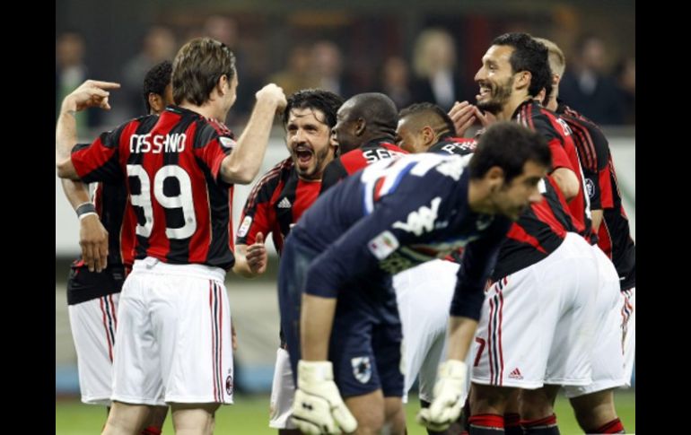 Deportes | Milan venció 3-0 a la Sampdoria y aumentó ocho puntos su ventaja sobre el Inter Milan gana y se aleja del Inter Milan venció 3-0 a la Sampdoria y aumentó ocho puntos su ventaja sobre el Inter Por: AP 16 de abril de 2011 - 15:43 hs Antonio Cassano celebra con su equipo tras marcar el segundo gol ante Sampdoria. REUTERS / ROMA, ITALIA (16/ABR/2011).- Milan venció el sábado 3-0 a la Sampdoria y aumentó a ocho puntos su ventaja sobre el Inter, que perdió 2-0 ante el Parma por la 33ra fecha de la Serie A. A cinco jornadas del final del campeonato, el Milan ocupa el primer lugar con 71 puntos, seguido a seis por el Napoli y a ocho por el Inter, que prácticamente se despidió de la lucha por el scudetto. Napoli enfrenta el domingo al Udinese. El técnico brasileño del Inter Leonardo reconoció que, tras ganar los últimos cinco campeonatos, su equipo quedó lejos de la lucha por el título. "Faltan cinco partidos y ocho puntos son tantos y ahora debemos preocuparnos de recuperar la condición del equipo cuanto antes", expresó a la televisora Sky. El brasileño dijo que Inter debe tratar de ganar los cinco encuentros que quedan y terminar lo más alto posible. Aclaró que la decisión de dejar fuera a los brasileños Thiago Motta y Maicon fue por motivos técnicos, "porque uno debe elegir a los jugadores que están mejor". Sorpresivamente, Leonardo no convocó a estos dos jugadores fundamentales, en lo que el diario Corrriere dello Sport dijo fue una medida disciplinaria porque no se habrían entrenado bien esta semana. También dejó en la banca a otro habitual titular, el holandés Wesley Sneijder, quien entró al inicio del segundo tiempo. Clarence Seedorf puso en ventaja al Milan a los 20 minutos con un tiro libre de gran distancia, en el que tuvo algo de complicidad del portero de la Sampdoria Gianluca Curci. Antonio Cassano aumentó la diferencia a los 55 con un gol de penal y Robinho redondeó el resultado con un gol de cabeza a los 61. El brasileño suma 11 goles esta temporada. Los rossoneri sufrieron las bajas por lesiones del atacante brasileño Alexandre Pato, quien salió de la cancha a los 41 minutos por un problema muscular, y del portero Cristian Abbiati a los 18. Pato habría sufrido una contractura y Abbiati una contusión y no jugarían los próximos partidos. Sampdoria sigue al borde de la zona de descenso a la Serie B con 32 puntos, y su situación podría empeorar aún más de acuerdo a lo que suceda con el resto de los partidos que se jugarán el domingo. Por su parte, el Parma se impuso al Inter con goles de Sebastian Giovinco a los 35 minutos y del brasileño Amauri a los 85. Poco antes, Amauri estuvo muy cerca de aumentar para el Parma cuando un tiro suyo golpeó el travesaño con el portero del Inter, el brasileño Julio César, totalmente vencido. Inter jugó el último cuarto de hora con cuatro hombres al ataque en búsqueda de la victoria: Samuel Eto'o, el argentino Diego Milito, Goran Pandev y Sneijder. Para el Parma fue una victoria decisiva porque con sus 35 puntos se aleja un poco de la zona de descenso. Poco antes, Palermo se impuso a domicilio 3-2 a la Roma con dos goles del atacante uruguayo Abel Hernández, ambos tras un pases del chileno Mauricio Pinilla, autor del otro tanto. La Roma perdió puntos importantes en su lucha por entrar a la zona europea de la liga italiana, y quedó en el sexto lugar con 53 unidades. Palermo marcha octavo con 47. Hernández anotó su doblete en apenas seis minutos, a los 84 y 90 minutos, y en ambos goles fue fundamental Pinilla que lo dejó solo frente al arco. El atacante chileno había anotado de penal el primer tanto del Palermo a los 43 minutos, tras una falta del argentino Nicolás Burdisso. Pinilla suma siete goles en el campeonato. La Roma había pasado adelante con un gol de penal de Francesco Totti a los 19 minutos y Mirko Vucinic anotó el segundo en los descuentos, dejando a su equipo 3-2. A la media hora, un violento derechazo de Hernández estuvo a punto de entrar al arco de la Roma, pero el balón besó un poste. El jugador francés de la Roma, Jeremy Ménez, se comió un gol cantado a los 46 minutos cuando solo frente al portero de la Roma su tiro pegó en el palo. El domingo jugarán Catania-Lazio, Cesena-Bari, Chievo-Bologna, Fiorentina-Juventus, Genoa-Brescia, Lecce-Cagliari y Napoli-Udinese. Temas Futbol Internacional AC Milán Inter de Milán Recibe las últimas noticias en tu e-mail Todo lo que necesitas saber para comenzar tu día Registrarse implica aceptar los Términos y Condiciones