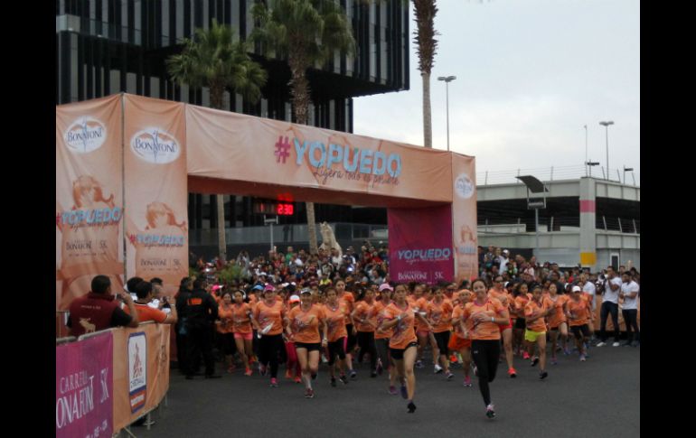 Deportes | La ganadora del 5K fue Violeta Gómez, con 18 minutos y 27 segundos Miles de mujeres dan color a la carrera Bonafont La ganadora del 5K fue Violeta Gómez, con 18 minutos y 27 segundos Por: EL INFORMADOR 31 de mayo de 2015 - 13:14 hs Las chicas lograron demostrar que no son el 'sexo débil'. EL INFORMADOR / A. Camacho GUADALAJARA, JALISCO (31/MAY/2015).- Con gran colorido, ánimos, emociones a flor de piel, incluso lágrimas de alegría por haber podido alcanzar el objetivo, gritos y porras, así se llevó a cabo la novena edición en Guadalajara, de la carrera 5K de Bonafont en uno de los principales centros comerciales de la Zona Metropolitana con más de 14 mil mujeres participantes. Madres e hijas, esposas, tías, amigas, novias, chavas con su mascota, carreolas, de todo se pudo apreciar en esta carrera, en donde no importó el tiempo, ni quién llegó en primer lugar, sino que lo que más importaba era alcanzar el objetivo de hacer entender que la mujer no es el sexo débil, sino que es más fuerte cada día, que es capaz de alcanzar lo que se proponga y esto quedó de manifiesto. Peso si hay que nombrar a una ganadora, a alguien que llegó en primer lugar y atravesó la meta con los brazos en alto, tenemos que mencionar a Violeta Gómez, quien rompió el listón en apenas 18 minutos, 27 segundos y 15 centésimas ante los gritos de apoyo y porras por parte de la gente que se dio cita en este centro comercial. "Fue muy rápida la carrera, el clima fue muy bueno, pero sí fue una carrera muy rápida", dijo Violeta Gómez al llegar a la meta. "Mi equipo, nosotros corremos por gusto, por el placer y tenemos años corriendo esta carrera, si no la gano, gana mi compañera Judith y es como una tradición, traernos el título al equipo", siguió. "Hay muchísimas personas, mujeres en este caso que se animan a correr y a caminar, y es un gran comienzo para que mejoren su calidad de vida. Ojalá no sólo fuera una carrera, sino que fueran más en el año para que tuvieran objetivos cercanos a lo largo de todo el año. Espero también que se apuntes más empresa para que se pueda lograr que todas las mujeres se puedan atrever a tener una mejor calidad de vida", finalizó así Violeta Gómez, con una enorme sonrisa en el rostro y presumiendo su medalla. Esta carrera se lleva a cabo de manera simultánea en cinco ciudades de la República Mexicana: en Monterrey, Puebla, Distrito Federal, Cancún y por supuesto Guadalajara, acumulando 65 mil participantes en estas sedes. Además, se corren tres categorías, las mujeres que corren, las que trotan y las que caminan, en donde participantes de todas las edades pueden tener la oportunidad de demostrar que si se quiere, se puede. EL INFORMADOR / JAVIER ROBLES Temas Atletismo Mujeres Deporte Amateur Lee También Inicia entrega de tarjetas Pensión Mujeres Bienestar en Jalisco; ¿cómo y dónde recogerla? Pensión Mujeres Bienestar: ¿Cómo saber si ya está disponible tu tarjeta? Pensión Mujeres Bienestar: ¿Cuándo recibirán el primer pago las beneficiarias? Pensión Mujeres Bienestar: Buscador con CURP para saber cuándo te entregan tu tarjeta Recibe las últimas noticias en tu e-mail Todo lo que necesitas saber para comenzar tu día Registrarse implica aceptar los Términos y Condiciones