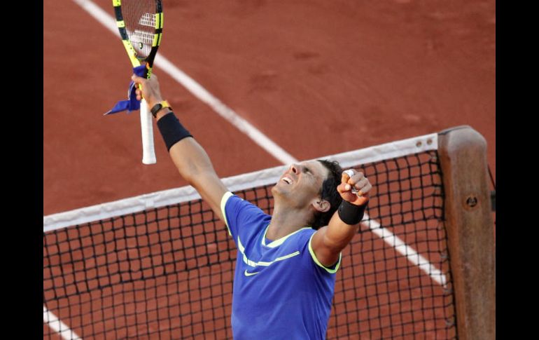 PARÍS, FRANCIA (09/JUN/2017).- El español Rafael Nadal jugará su décima final en París, donde no ha perdido ninguna, tras derrotar al austríaco Dominic Thiem por 6-3, 6-4 y 6-0 en dos horas y siete minutos, poro lo que se medirá por su décima Copa de los Mosqueteros contra el suizo Stan Wawrinka. Nadal no ha perdido un solo set en el torneo y solo ha dejado escapar 29 juegos, seis menos que en 2008, cuando llegó a la final habiendo cedido 35.