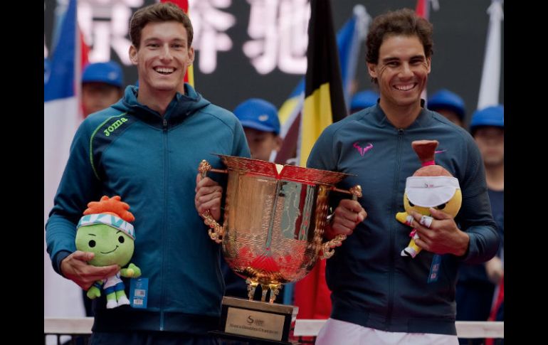 PEKÍN, CHINA (09/OCT/2016).- Los españoles Rafael Nadal y Pablo Carreño ganaron este domingo el Abierto de China en dobles al derrotar en la final a la pareja formada por el estadounidense Jack Sock y el australiano Bernard Tomic.En un partido muy igualado, el dúo español tuvo que llegar hasta el desempate del tercer set, en un final lleno de nervios, para alzarse con el título en Pekín.Nadal y Carreño se impusieron por 6-7(6), 6-2 y 10-8 a Sock y Tomic, tras hora y media de juego y después de eliminar en las semifinales a los primeros favoritos, los hermanos estadounidenses Bob y Mike Bryan.El partido comenzó equilibrado, las dos parejas se movían con agilidad y ofrecían un intercambio de golpes vistoso sin un dominador claro.Carreño y Nadal se pusieron con ventaja tras una rotura y la apuntalaron en su siguiente servicio (5-3).Al verse por delante, los españoles se relajaron y su juego dio un bajón, erraron algunos golpes fáciles y la red escupió otros, lo que, sumado a los pocos fallos de Tomic y Sock, hizo que desaprovecharan su ventaja (5-6).La pareja española salió de su bloqueo para forzar el desempate, pero sus rivales terminaron haciéndose con el primer set.En la segunda manga, Nadal y Carreño volvieron a golpear primero y se adelantaron en el marcador (4-2) después de otra rotura, aunque esta vez ampliaron su ventaja en su siguiente servicio y se adjudicaron el set al resto (6-2).Sock y Tomic empezaron lanzados en el desempate del tercer set (3-0), pero los españoles consiguieron igual (4-4) y, a partir de ahí, se fueron alternando las ventajas hasta que finalmente Nadal y Carreño cerraron la victoria (10-8).Las gradas de la llamada Pista de Diamante, la principal del Centro Nacional de Tenis de Pekín, celebraron el triunfo de Nadal y Carreño, a quienes animaron durante el todo el partido con múltiples banderas españolas.En su camino hacia el título de dobles, Nadal y Carreño - eliminados ambos en cuartos de final del cuadro individual- vencieron en su debut a los terceros favoritos, la pareja formada por el indio Rohan Bopanna y el canadiense Daniel Nestor, a los chinos Gong Mao Xin y Zhang Ze en cuartos y a los gemelos Bryan en semifinales.En el dobles femenino, la pareja formada por la estadounidense Bethanie Mattek-Sands y la checa Lucie Safarova ganó el título del Abierto de China al imponerse en la final a las principales favoritas del cuadro, las francesas Caroline Garcia y Kristina Mladenovic, por un doble 6-4.
