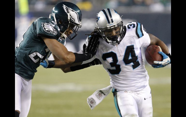 Deportes | Carolina vence 30-22 al equipo de Filadelfia Newton guía a las Panteras sobre las Águilas Carolina (3-8) se fue arriba con 24-22 al principio del cuarto período con un gol de campo de 23 yardas de Graham Gano Por: AP 26 de noviembre de 2012 - 23:07 hs DeAngelo Williams (Filadelfia) es detenido por Nnamdi Asomugha de las Águilas de Filadelfia. REUTERS / FILADELFIA, ESTADOS UNIDOS (27/NOV/2012).- Cam Newton lanzó para dos touchdowns y corrió para otros dos en una gran actuación que llevó el lunes a las Panteras de Carolina a la victoria por 30-22 sobre las Águilas de Filadelfia en un encuentro entre los equipos con las peores fojas en la Conferencia Nacional. Bryce Brown estableció marca del club para un novato con 178 yardas por tierra, incluyendo carreras para touchdown de 65 y 5 yardas, pero aun así las Águilas (3-8) sufrieron su séptima derrota consecutiva. Brown, en sustitución del running back LeSean McCoy que está lesionado, superó la marca del novato Correll Buckhalter de 134 yardas por tierra y lo hizo en su primera participación titular desde su último año con Wichita East High School en 2008. Pero Brown perdió dos balones, incluyendo uno en el territorio de las Panteras. Carolina (3-8) se fue arriba con 24-22 al principio del cuarto período con un gol de campo de 23 yardas de Graham Gano. Temas NFL Futbol Americano Águilas de Filadelfia Panteras de Carolina Lee También México Sub-20 regresa al país tras eliminación ante Argentina Futbol hoy 12 de octubre de 2025: ¿Dónde ver los partidos en vivo? Chivas y América empatan en partido amistoso Nos quedamos con sensaciones cortas: Eduardo Arce Recibe las últimas noticias en tu e-mail Todo lo que necesitas saber para comenzar tu día Registrarse implica aceptar los Términos y Condiciones